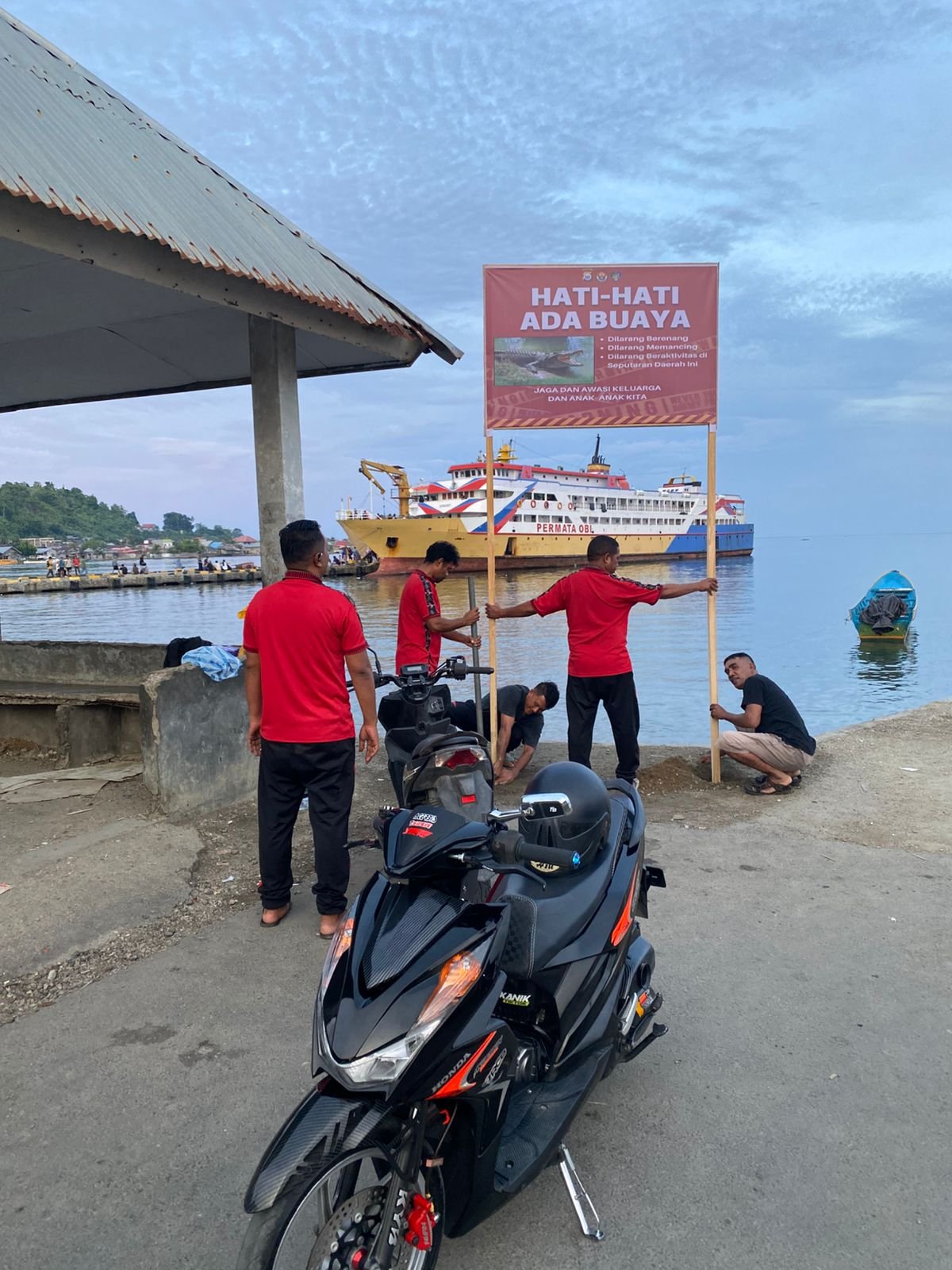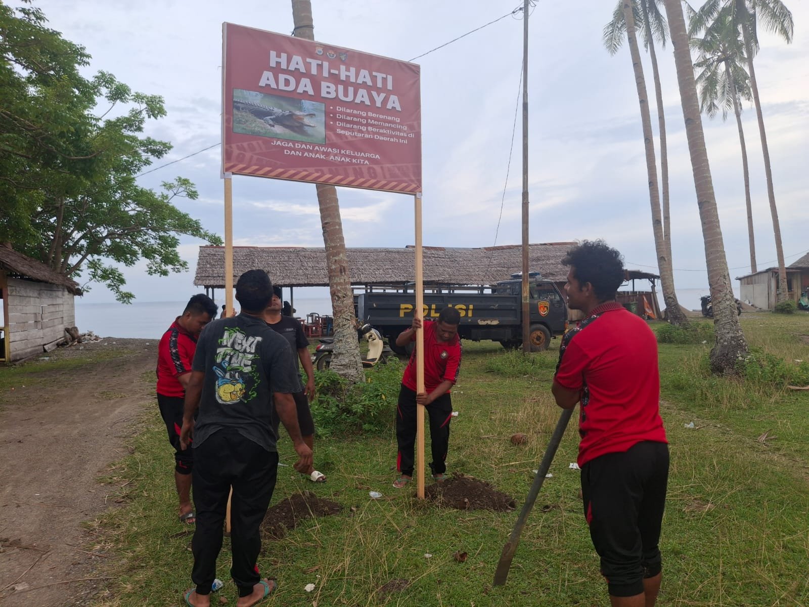 HUMAS POLRES SULA — Dalam rangka meningkatkan kewaspadaan masyarakat serta mencegah terjadinya korban akibat potensi serangan buaya di wilayah pesisir, Polres Kepulauan Sula melalui Sat Polairud bersama Sie Humas Polres Kepulauan Sula melaksanakan kegiatan pemasangan baliho imbauan bahaya buaya, pada Selasa (20/01/2026)
