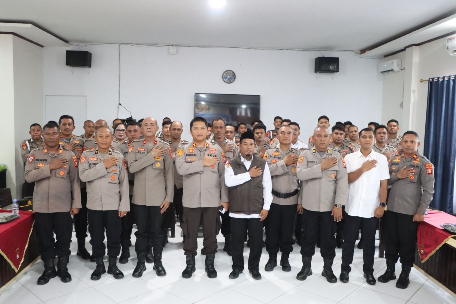 Kegiatan tersebut dipimpin langsung oleh Kapolres Kepulauan Sula AKBP Kodrat Muh. Hartanto, S.I.K, dan dihadiri oleh Wakapolres Kepulauan Sula, para Kabag, Kasat, Kasi, PJU Polres Kepulauan Sula, tokoh agama, serta sekitar 40 personel Polres Kepulauan Sula.