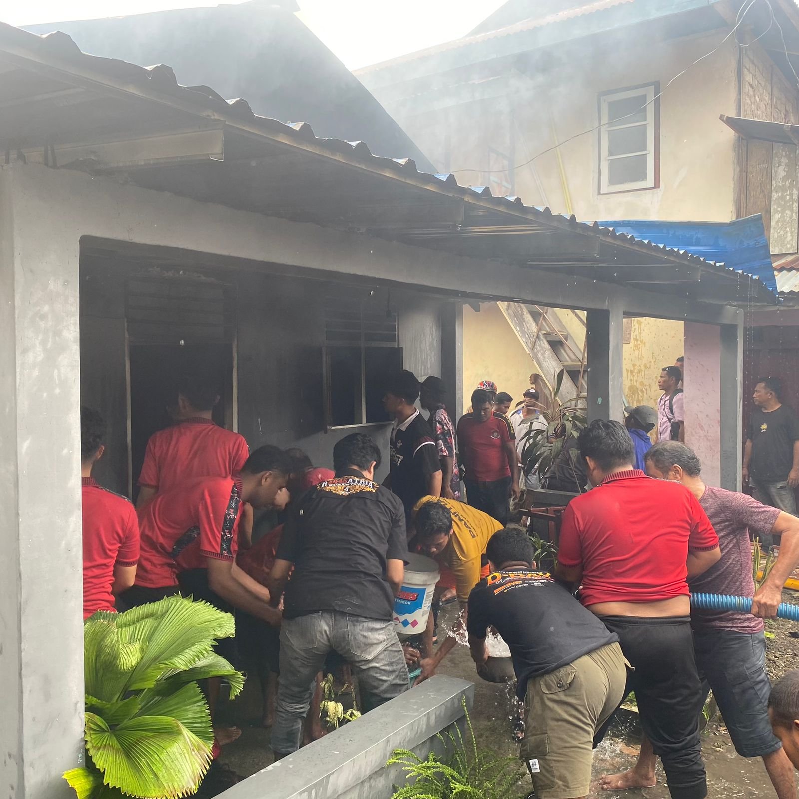 Api dengan cepat membesar dan menghanguskan sebagian besar bangunan rumah. Berkat kesigapan warga bersama aparat kepolisian yang segera turun tangan, api berhasil dipadamkan sehingga tidak merembet ke rumah-rumah lainnya.