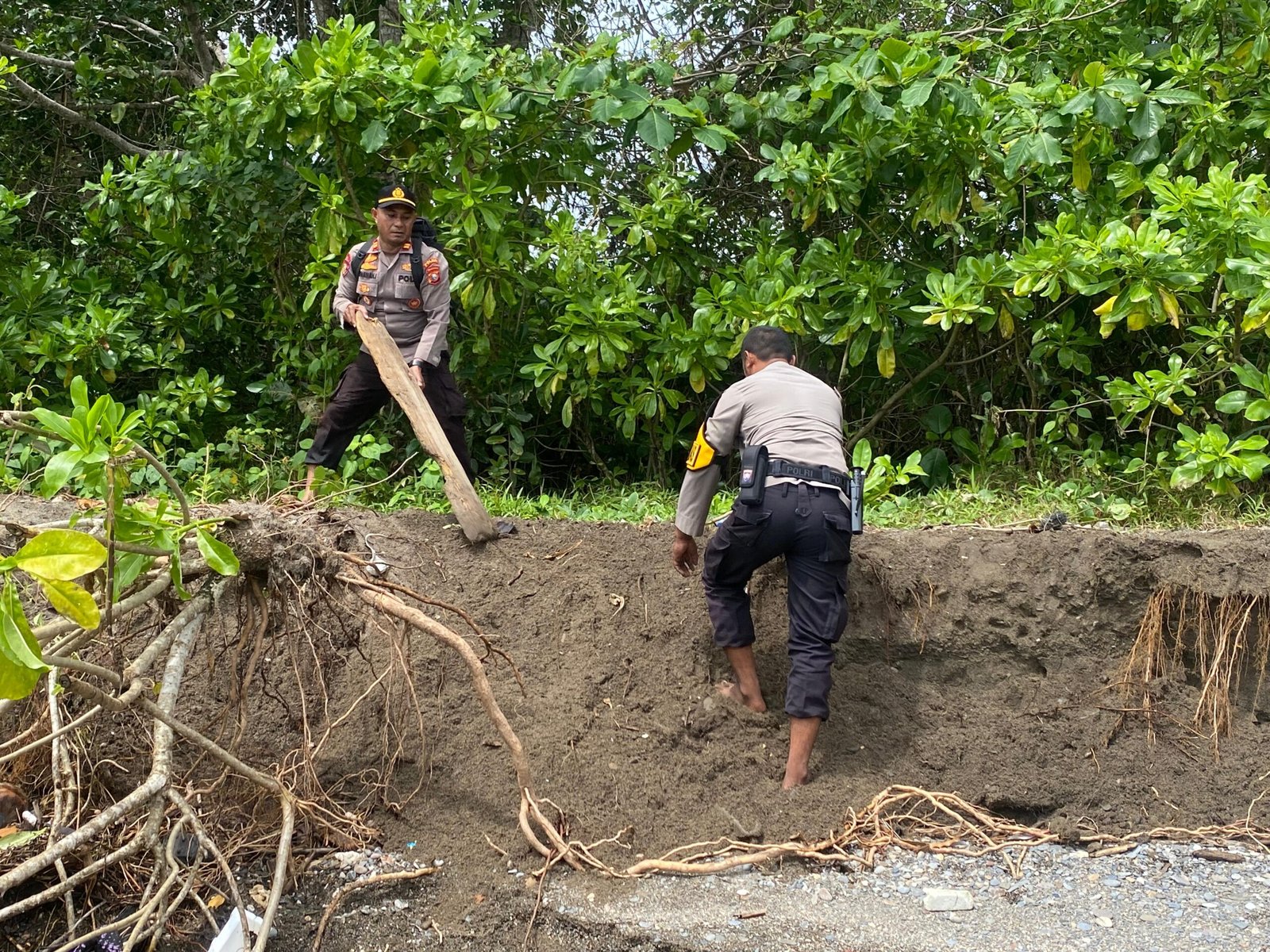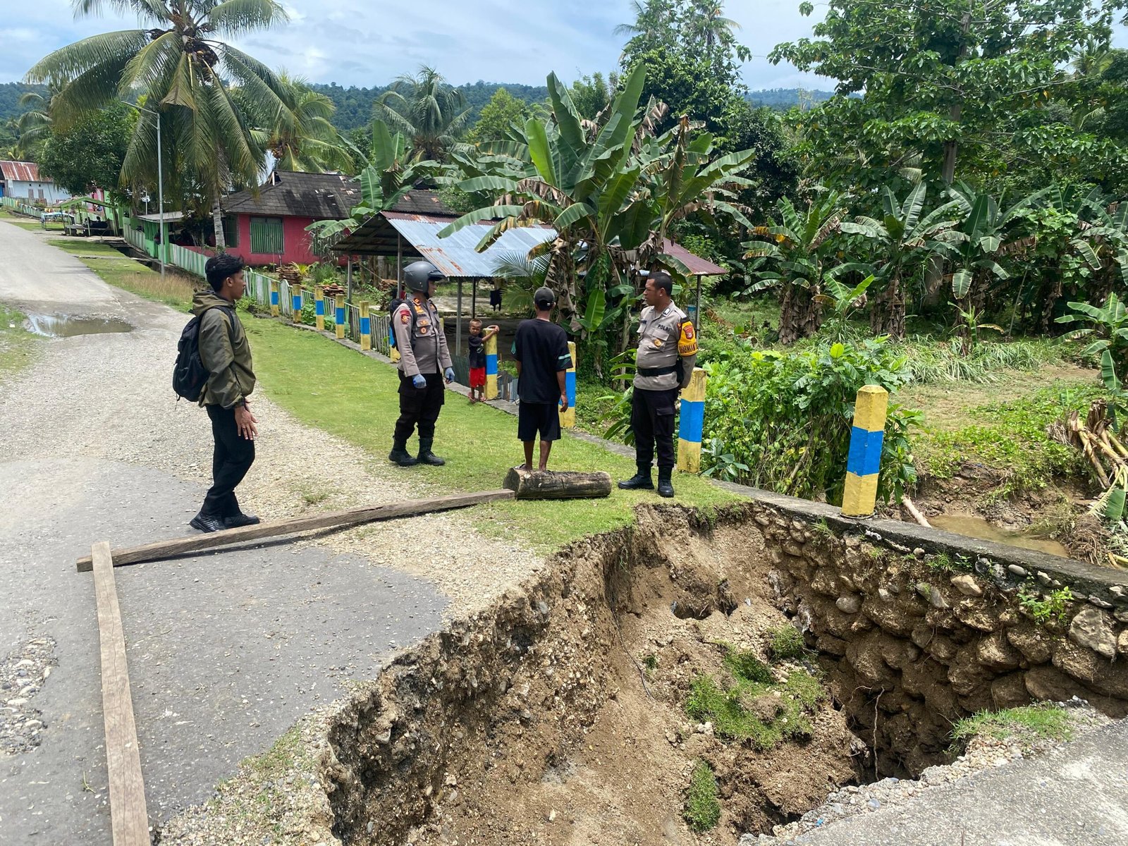 Humas Polres Sula – Polsek Sulabesi Barat melaksanakan Kegiatan Patroli Kamtibmas serta pemantauan situasi dan kondisi wilayah hukum Polsek Sulabesi Barat, Polres Kepulauan Sula, terkait adanya kerusakan akses jalan / jembatan di wilayah Kec. Sulabesi Selatan dan Kec. Sulabesi Barat pada wilayah hukum Polsek Sulabesi Barat, pasca terjadinya hujan lebat yang mengakibatkan banjir pada hari Senin tanggal 06 s/d Rabu tanggal 08 Oktober 2025, oleh Personil Polsek Sulabesi Barat.