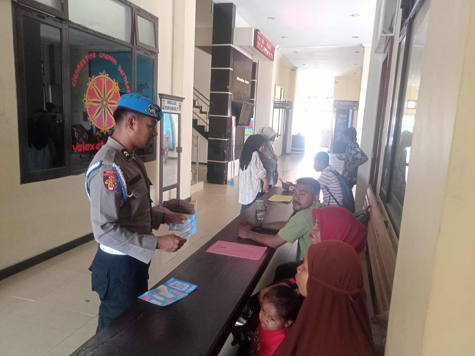 Sementara secara langsung, personel Si Propam Polres Kepulauan Sula melaksanakan kegiatan dengan memasang banner layanan Dumas di ruang-ruang pelayanan publik Polres, stiker QR Code Dumas di sejumlah lokasi strategis yang mudah dijangkau masyarakat, serta membagikan brosur Dumas berisi panduan cara melapor, memberikan saran, maupun menyampaikan apresiasi terhadap pelayanan Polri.
