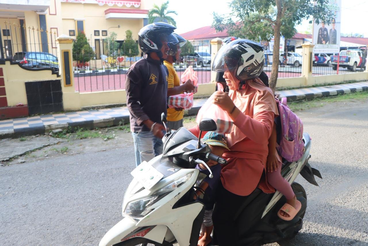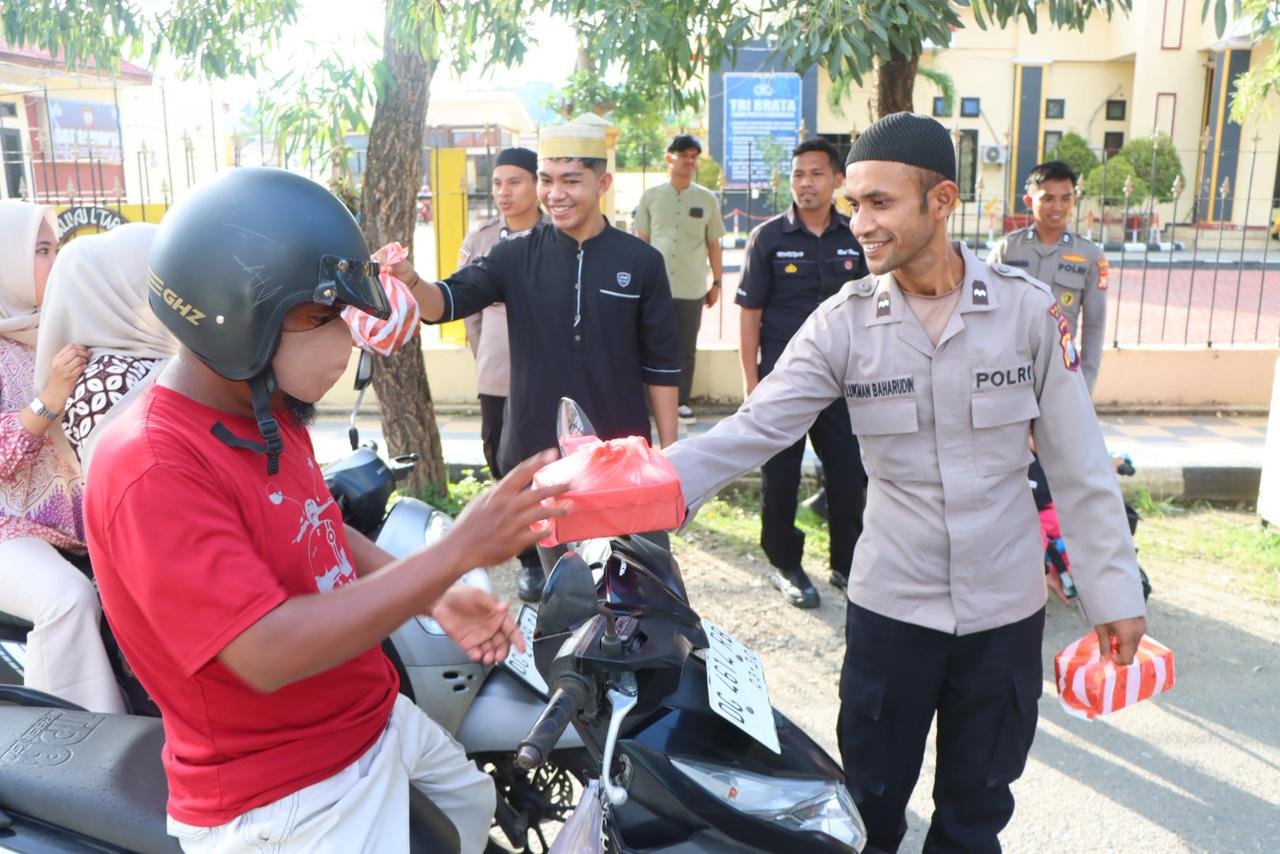 Pembagian dilakukan secara tertib dengan tetap memperhatikan kelancaran arus lalu lintas, sehingga masyarakat dapat menerima takjil dengan aman dan nyaman menjelang waktu berbuka puasa. Kegiatan ini pun disambut antusias oleh warga yang merasa terbantu sekaligus mengapresiasi kepedulian Polres Kepulauan Sula di bulan penuh berkah.