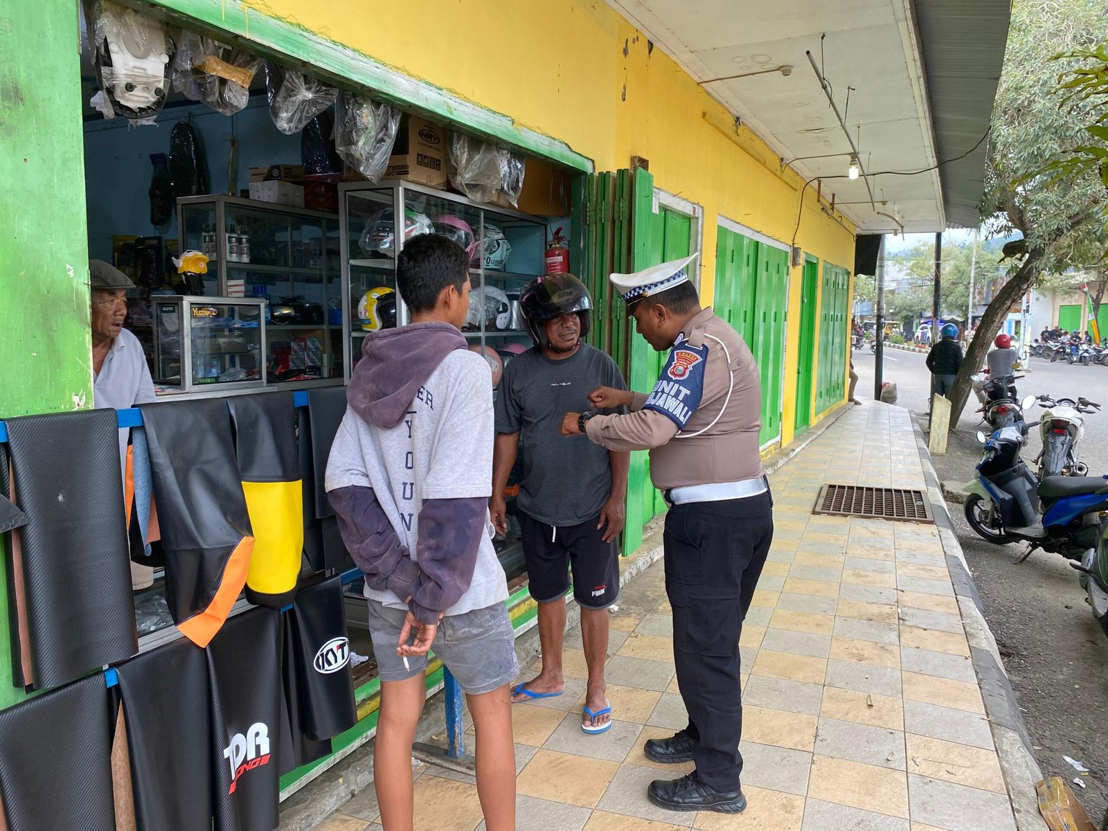Dalam kegiatan tersebut, personel Sat Lantas memberikan edukasi langsung kepada masyarakat, khususnya para pengguna jalan dan warga sekitar pertokoan, agar senantiasa disiplin serta mengutamakan keselamatan saat berkendara.