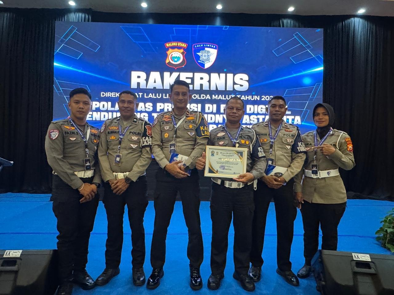 Penghargaan tersebut diberikan langsung oleh Direktur Lalu Lintas Polda Maluku Utara, Kombes Pol Donny Hermawan, S.H., S.I.K., M.Si., sebagaimana tertuang dalam Piagam Penghargaan Nomor: P/72/IX/2025/Ditlantas, tertanggal 21 Oktober 2025.