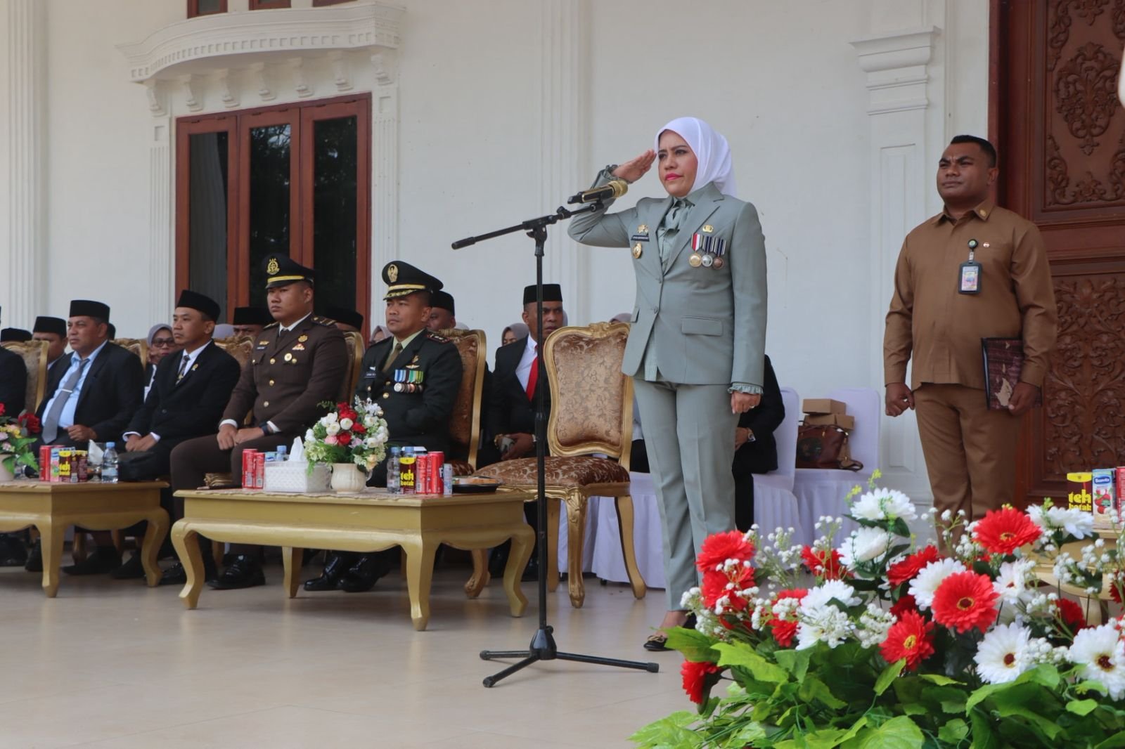 Upacara yang berlangsung khidmat tersebut dipimpin oleh Bupati Kepulauan Sula HJ. Fifian Adeningsi Mus, S.H., dan dihadiri oleh unsur Forum Koordinasi Pimpinan Daerah (Forkopimda), TNI, Polri, dan ASN.