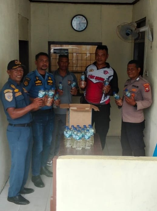 “Adapun miras yang diamankan sebanyak 1 karton dos Aqua yang berisi 24 botol berukuran 600 ml yang diselip di dalam sebuah dos besar tanpa pemilik,” Cetusnya.