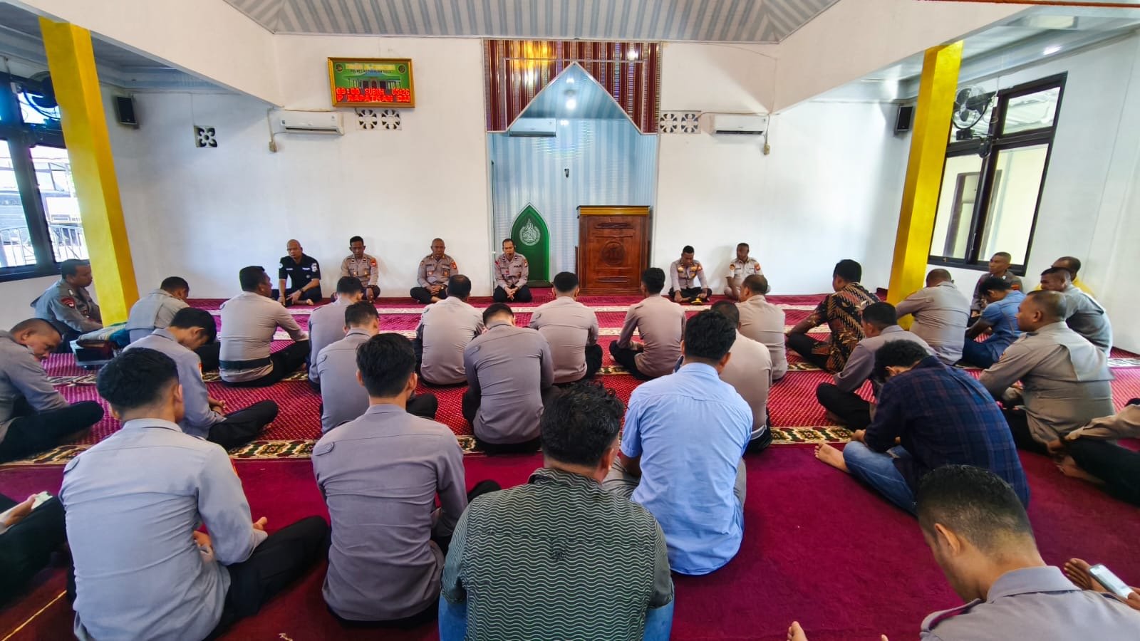 Personel Muslim melaksanakan kegiatan di Masjid Al-Mubaraq yang dipimpin oleh AIPDA Samsul Mohtar. Dalam tausiyahnya, ia mengajak seluruh personel menjadikan momentum Ramadhan sebagai sarana introspeksi diri dan peningkatan kualitas ibadah.