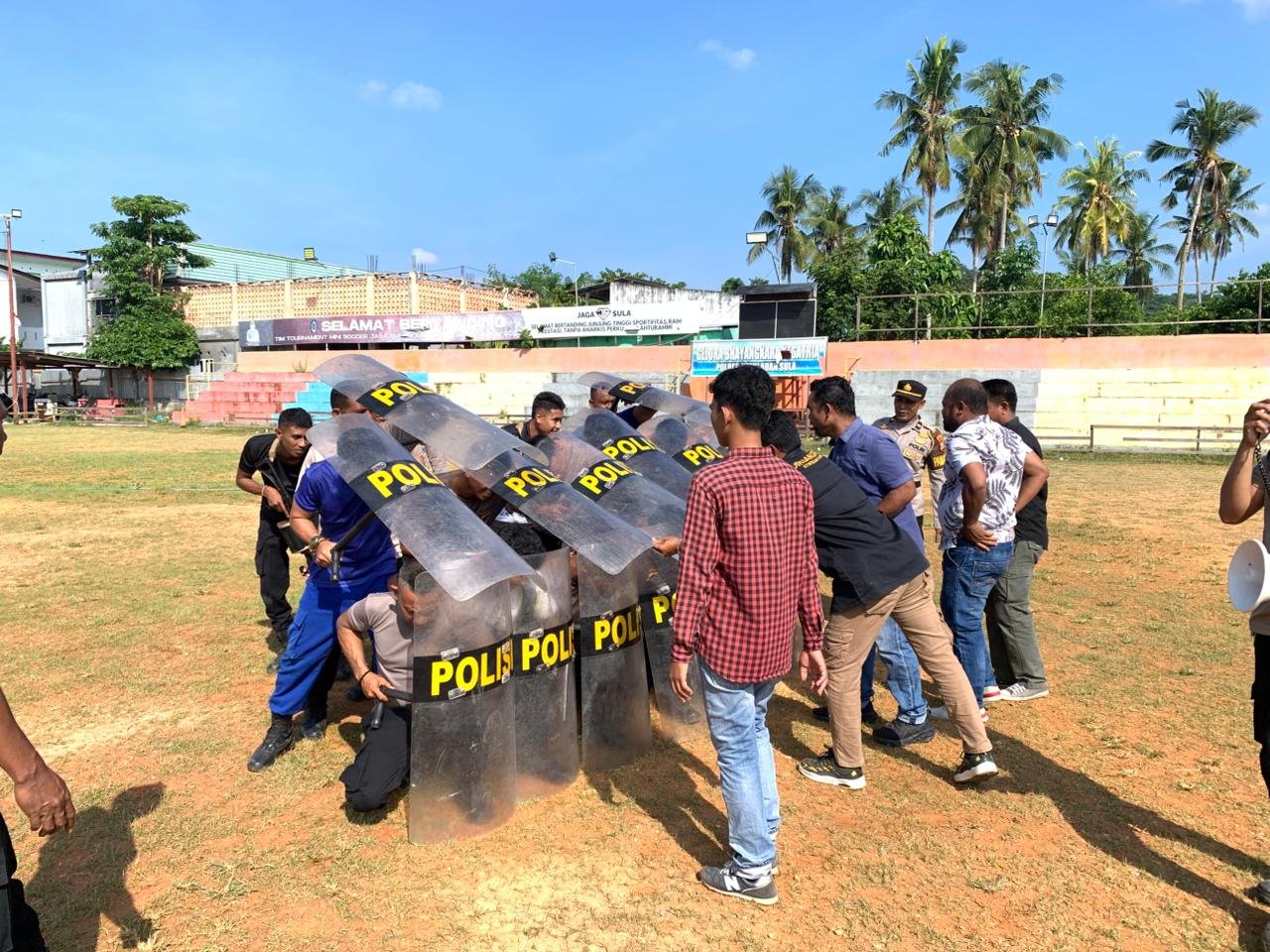 HUMAS POLRES SULA — Dalam rangka meningkatkan kesiapsiagaan serta kemampuan personel dalam menghadapi dinamika situasi di lapangan, Polres Kepulauan Sula melaksanakan kegiatan latihan simulasi pengamanan dan penanganan aksi unjuk rasa, yang berlangsung di Lapangan Gelora Bhayangkara Kesatria (GBK) Polres Kepulauan Sula, Desa Fatce, Kecamatan Sanana, Kamis (23/04) pukul 08.45 WIT.