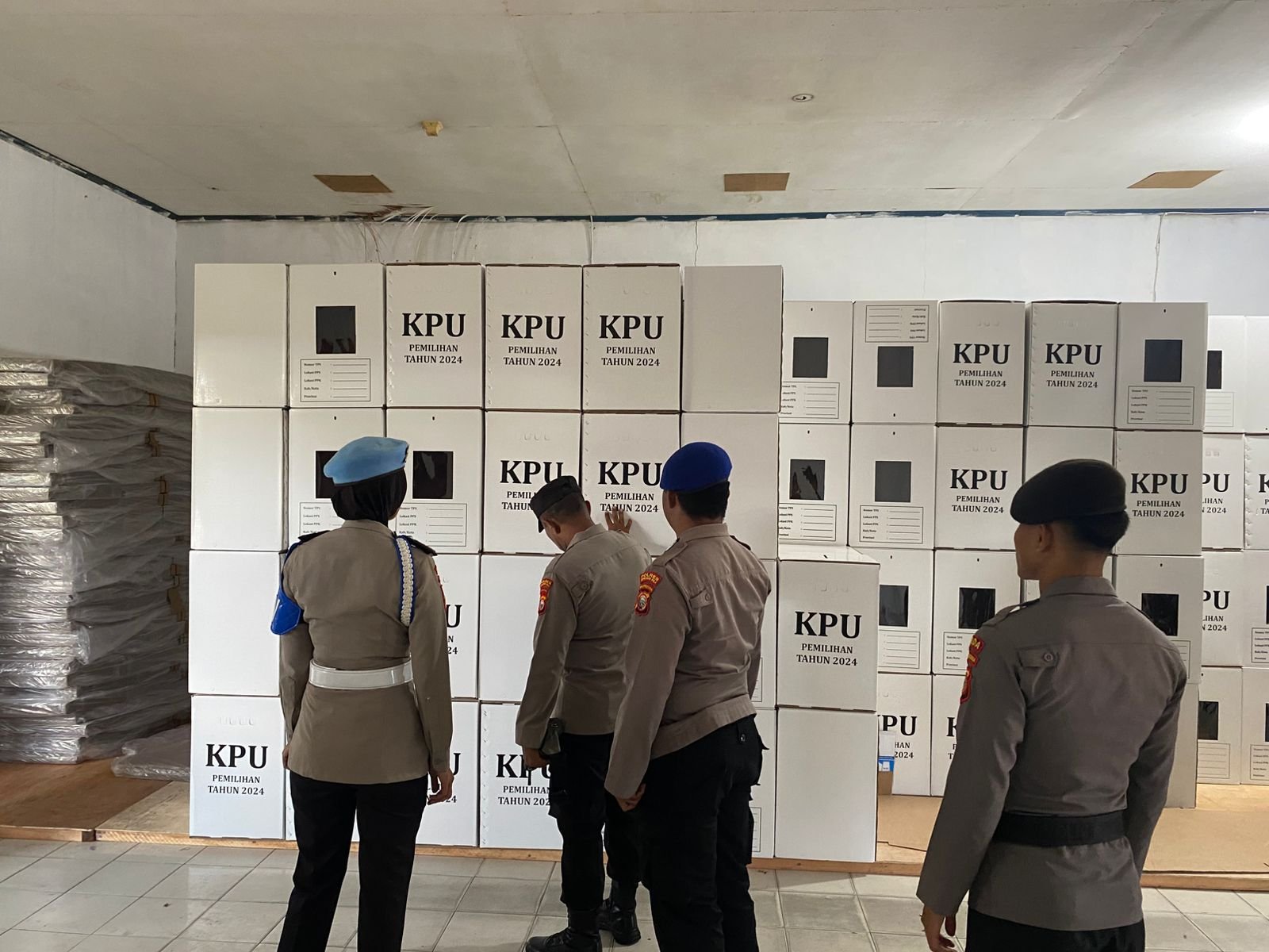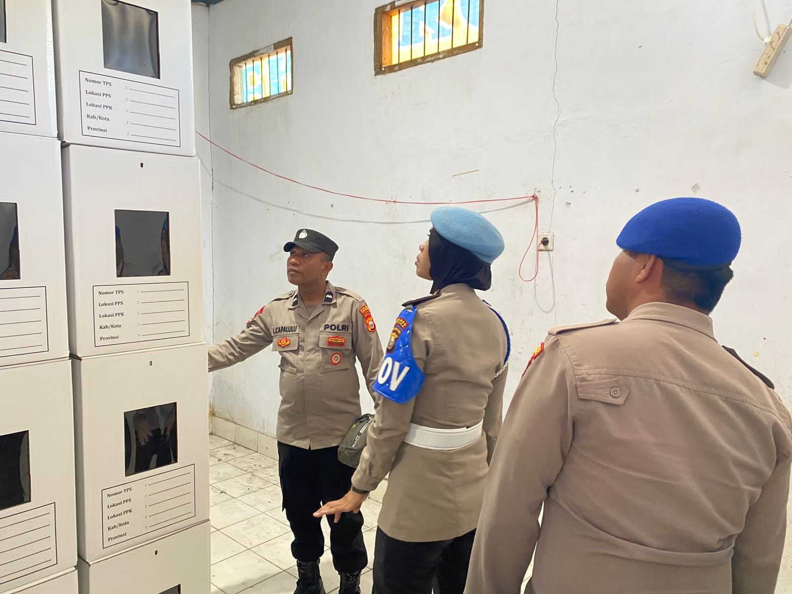 Polres Kepulauan Sula- Dalam rangka menjaga keamanan dan kelancaran, Personil Operasi Mantap Praja (OMP) Kieraha 2024, lakukan patroli di Gudang Logistik KPU Desa Fatce, Senin (11/11/24).