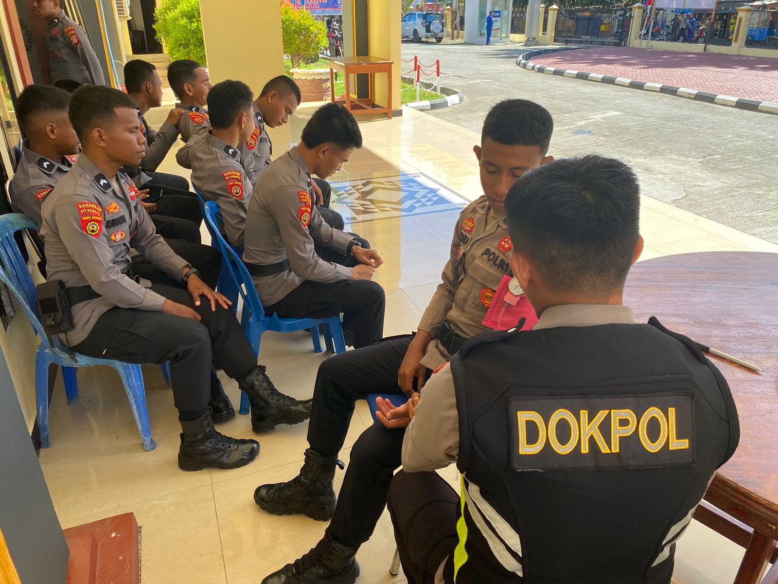 Polres Kepulauan Sula- Subsatgas Dokkes Polres Sula melakukan pengecekan kesehatan kepada Personel Polres Sula yang terlibat dalam Operasi Mantap Praja Kieraha 2024, yang berlangsung di Mako Polres. Sabtu (19/10/24).