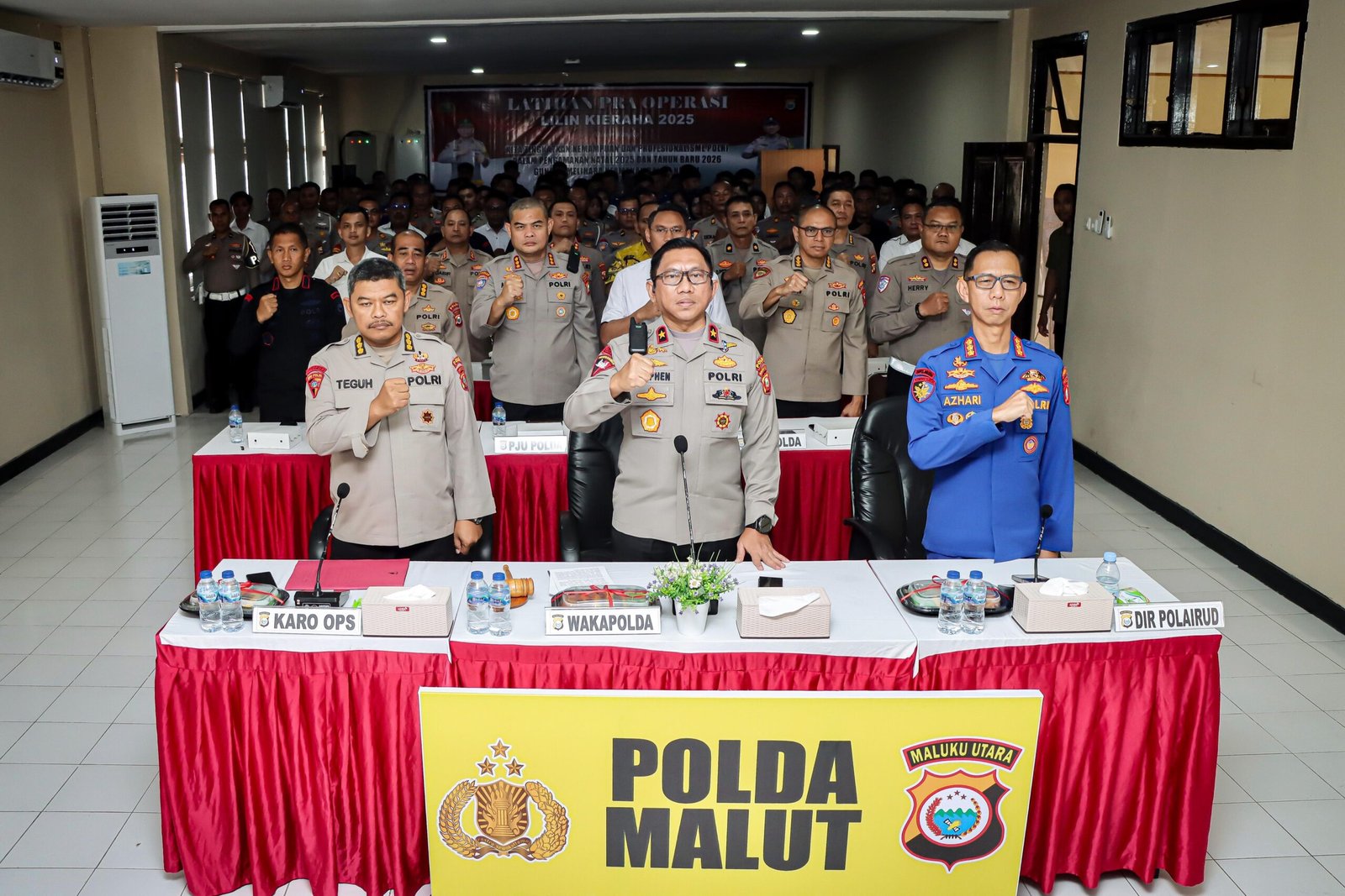HUMAS POLDA MALUT – Wakapolda Maluku Utara Brigjen Pol. Stephen M. Napiun, S.I.K, S.H., M.Hum. membuka pelaksanaan Latihan Pra Operasi (Latpraops) Lilin Kieraha 2025 dalam rangka pengamanan Natal 2025 dan Tahun Baru 2026. bertempat di Aula Rupattama Polda Maluku Utara, Kamis, (18/12/2025).