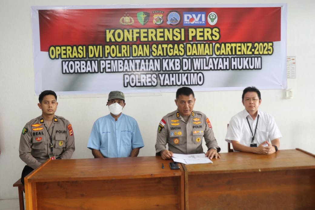 Konferensi pers digelar di RSUD Dekai Kabupaten Yahukimo, dengan dihadiri oleh Direktur RSUD Yahukimo Dr. Glenn M. Nutanyo, M.Kes., serta tim medis dari RS Bhayangkara Jayapura.