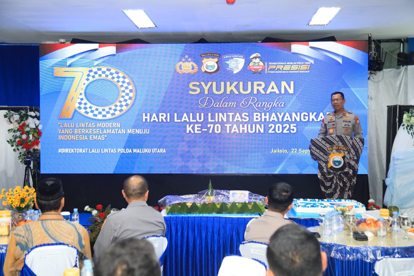 Humas Polri – Kepala Kepolisian Daerah Maluku Utara, Irjen Pol. Drs. Waris Agono, M.Si, bersama Wakil Kepala Kepolisian Daerah Maluku Utara, Brigjen Pol. Stephen M. Napiun, S.I.K., S.H., M.Hum, menghadiri acara syukuran Hari Lalu Lintas Bhayangkara ke-70 Tahun 2025 yang digelar di Jailolo.