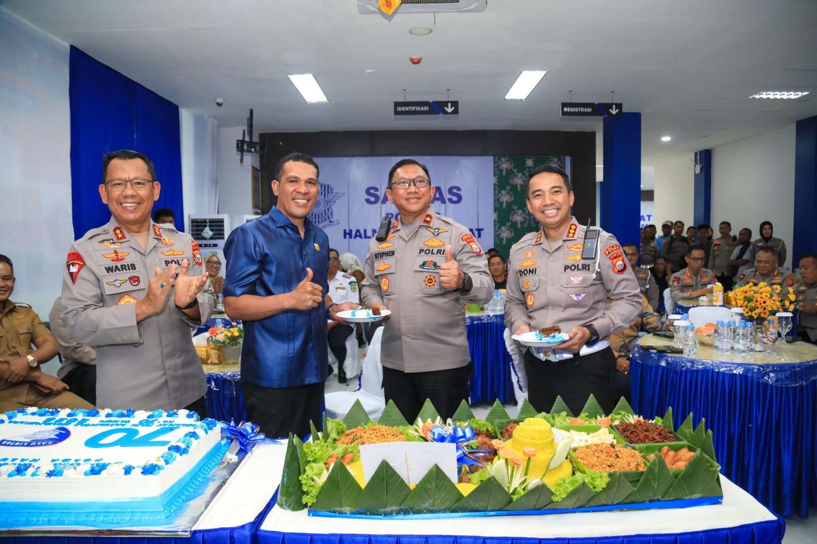 Humas Polri – Kepala Kepolisian Daerah Maluku Utara, Irjen Pol. Drs. Waris Agono, M.Si, bersama Wakil Kepala Kepolisian Daerah Maluku Utara, Brigjen Pol. Stephen M. Napiun, S.I.K., S.H., M.Hum, menghadiri acara syukuran Hari Lalu Lintas Bhayangkara ke-70 Tahun 2025 yang digelar di Jailolo.