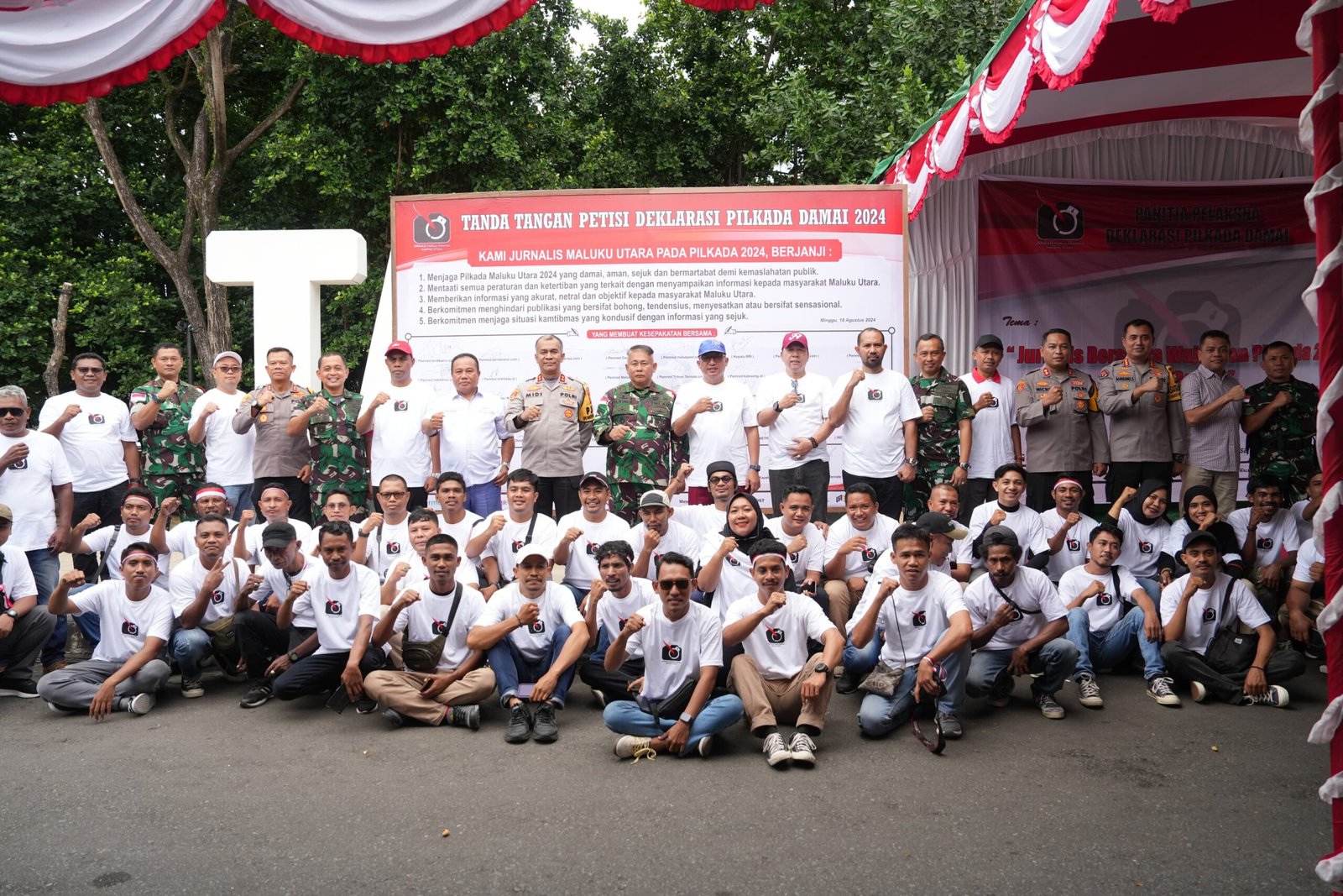 Untuk di ketahui,Puncak acara adalah pembacaan Deklarasi Pilkada Damai oleh Ketua PWI Malut, Ketua Aji Ternate, dan Ketua IJTI Malut, yang kemudian diikuti oleh seluruh jurnalis dan tamu undangan.Deklarasi tersebut ditandai dengan pelepasan balon udara oleh PJ Gubernur, didampingi oleh unsur Forkopimda Maluku Utara.