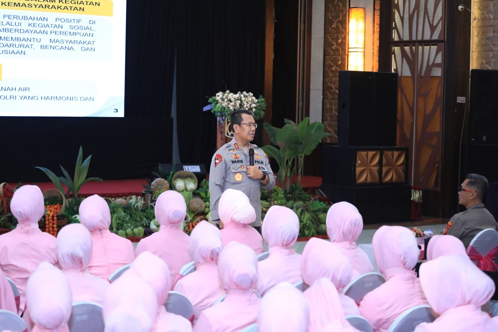 Dalam sambutannya, Pembina Bhayangkari Daerah Maluku Utara, Irjen Pol. Drs. Waris Agono, M.Si., menyampaikan bahwa Bhayangkari memiliki peran penting sebagai penopang utama rumah tangga dan pendukung penuh dalam pelaksanaan tugas-tugas kepolisian.