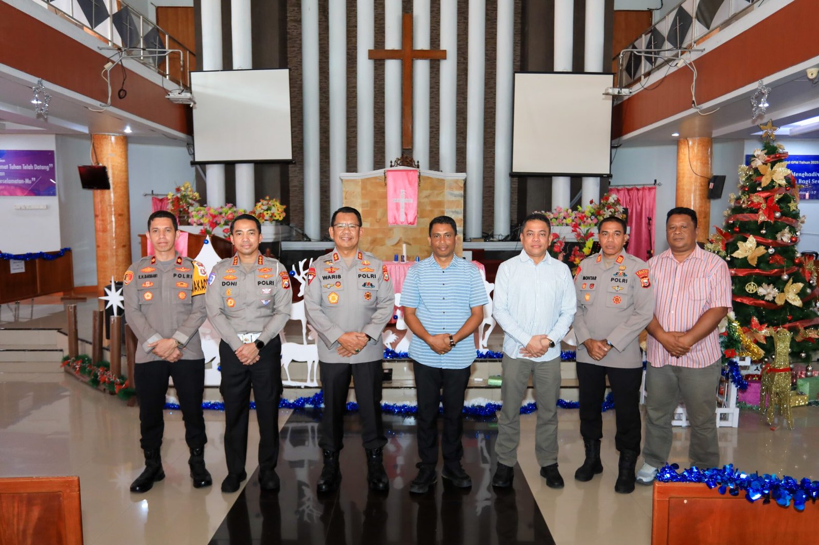 Humas Polri – Kepala Kepolisian Daerah Maluku Utara, Irjen Pol. Waris Agono, M.Si, melaksanakan kegiatan silaturahmi dengan para pimpinan jemaat dalam rangka Ibadah Perayaan Hari Natal 2025 dan Tahun Baru 2026. Kegiatan ini bertujuan untuk mempererat hubungan serta situasi keamanan masyarakat (kamtibmas) tetap aman dan nyaman menjelang hari besar keagamaan.