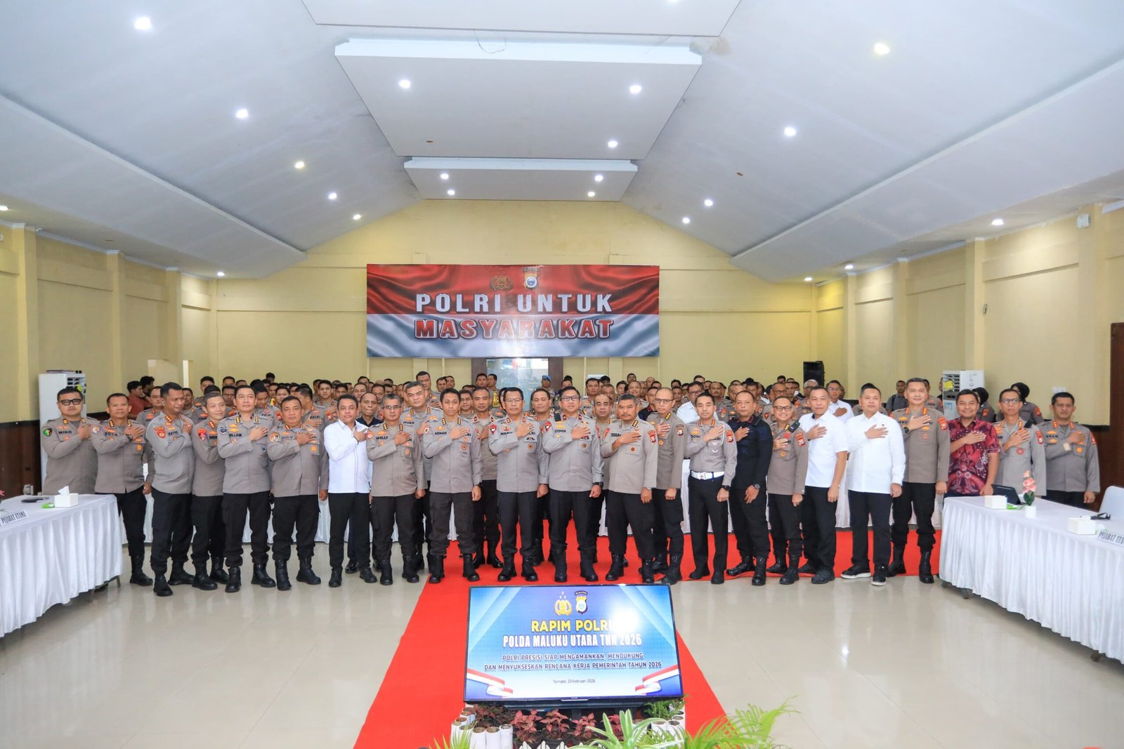 HUMAS POLDA MALUT – Kapolda Maluku Utara Irjen Pol. Drs. Waris Agono, M.Si., membuka Rapat Pimpinan (Rapim) Polri Tingkat Polda Maluku Utara Tahun 2026 pada Jumat (20/2/2026). Kegiatan tersebut berlangsung di Aula Polres Ternate dan diikuti seluruh jajaran Polda Malut.