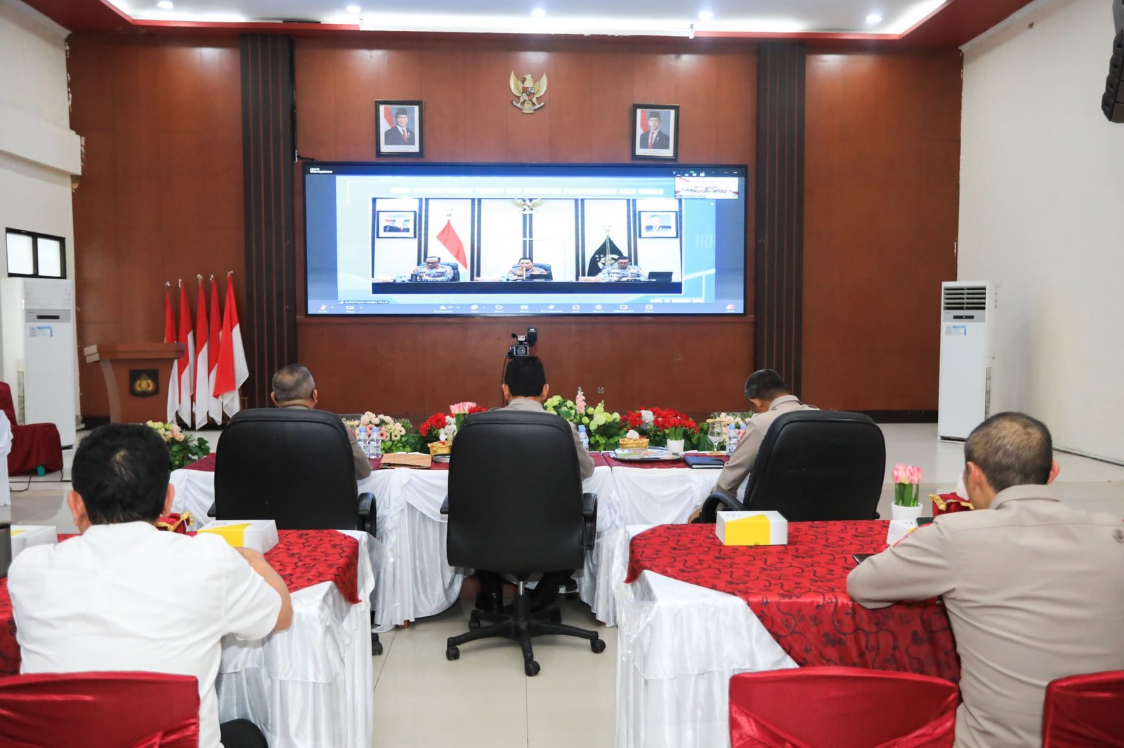 HUMAS POLDA MALUT – Kapolda Maluku Utara, Irjen Pol. Drs. Waris Agono, M.Si, menghadiri pengarahan Kapolri Jenderal Polisi Listyo Sigit Prabowo melalui Zoom Meeting di Aula Kieraha Polda Malut, Rabu, (27/8/2025).