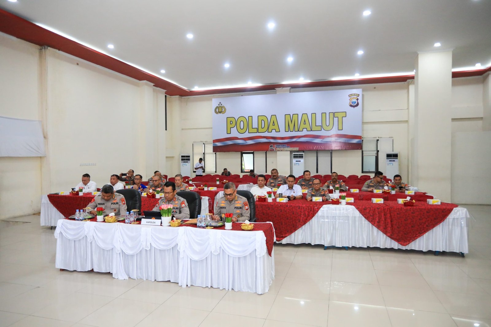 HUMAS POLDA MALUT – Kapolda Maluku Utara, Irjen Pol. Drs. Waris Agono, M.Si, menghadiri pengarahan Kapolri Jenderal Polisi Listyo Sigit Prabowo melalui Zoom Meeting di Aula Kieraha Polda Malut, Rabu, (27/8/2025).