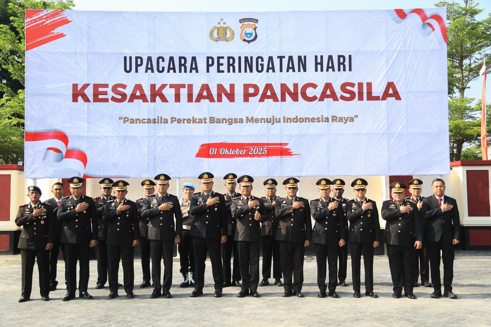 Kepala Kepolisian Daerah Maluku Utara Irjen Pol. Dr. Waris Agono, M.Si bertindak sebagai Inspektur Upacara dalam peringatan Hari Kesaktian Pancasila yang dilaksanakan di Lapangan Apel Polda Maluku Utara, Sofifi. Rabu (1/10).