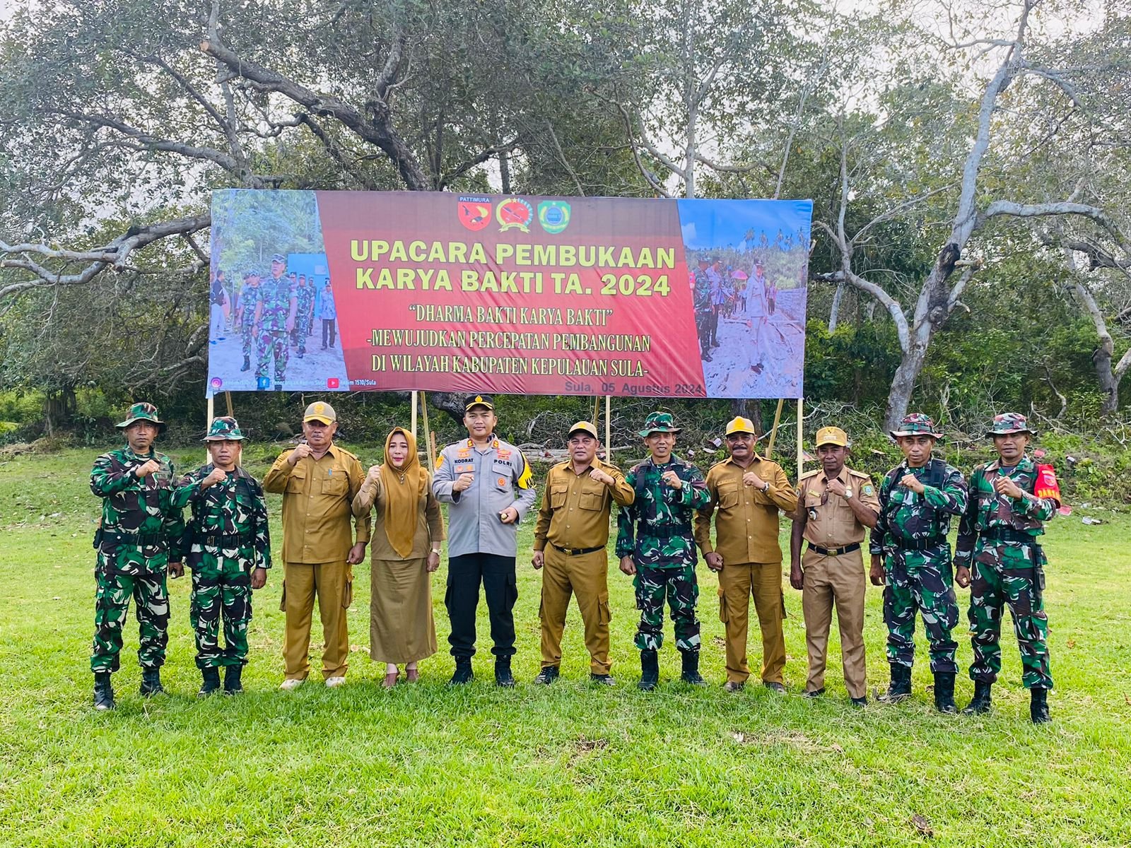Polres Kepulauan Sula- Kepala Kepolisian Resor Sula AKBP Kodrat Muh Hartanto, S.I.K, Menghadiri Upacara Pembukaan Karya Bhakti Kodim 1510 Sula Tahun 2024 dalam rangka “Dharma Bakti Karya Bakti Mewujudkan Percepatan Pembangunan Di Wilayah Kabupaten Kepulauan Sula” bertempat di Lapangan Bola Desa Kabau Kec. Sulabesi Barat, Selasa (6/8/24).