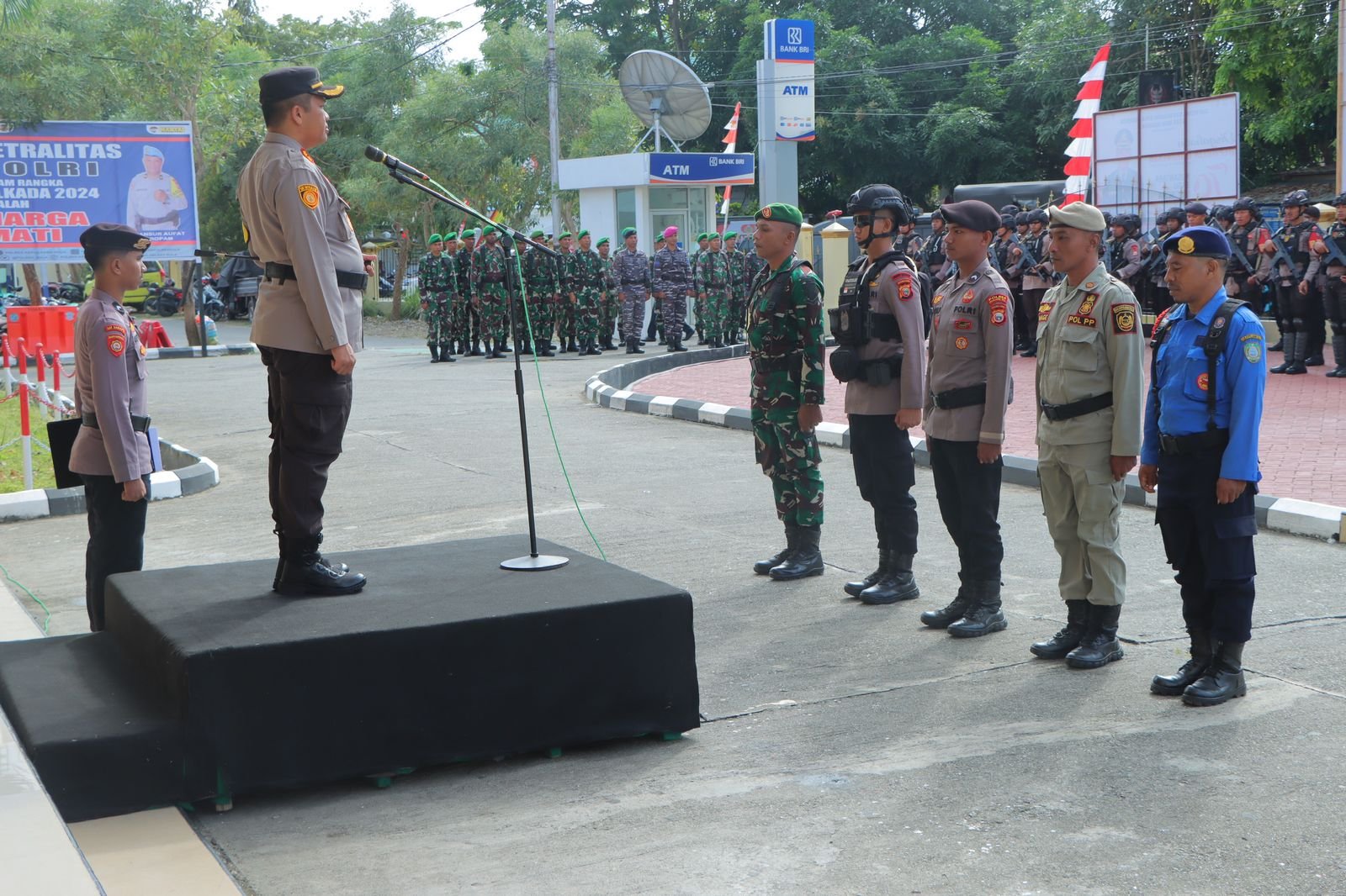 Dalam rangka Pengamanan Pemilihan Gubernur dan Wakil Gubernur, Bupati dan Wakil Bupati di Kabupaten Kepulauan Sula yang berlangsung di halaman Mako Polres Sula, pada hari Selasa (20/8/24).