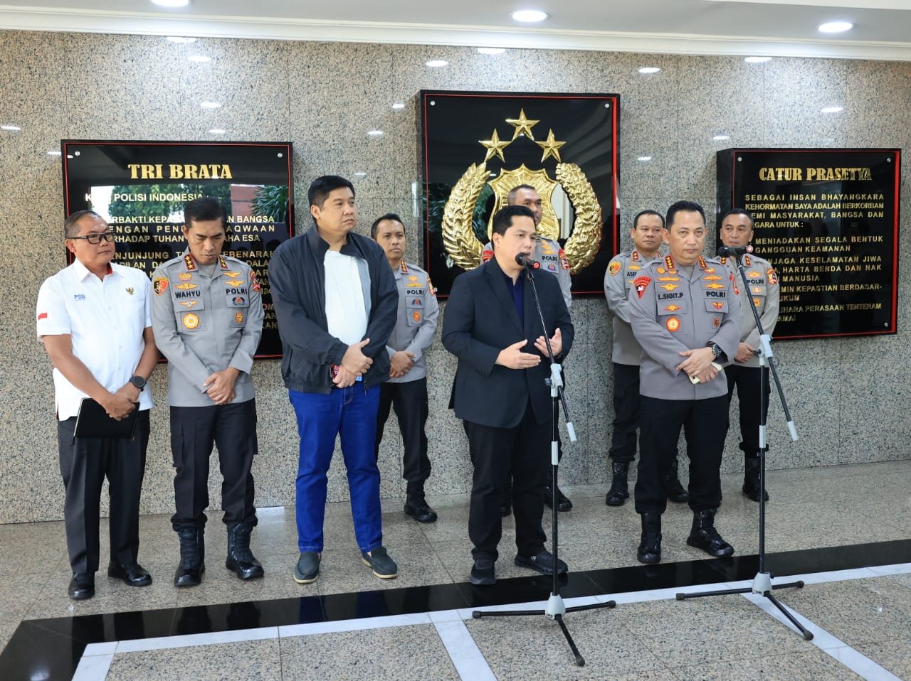 Dalam kesempatan ini, Erick pun menyampaikan apresiasi kepada Kapolri dan jajarannya yang ikut mendukung pesepakbolaan Indonesia menjadi lebih baik. Ia pun mencontohkan bagaimana pengamanan agenda tim nasional yang dilakukan Polri.