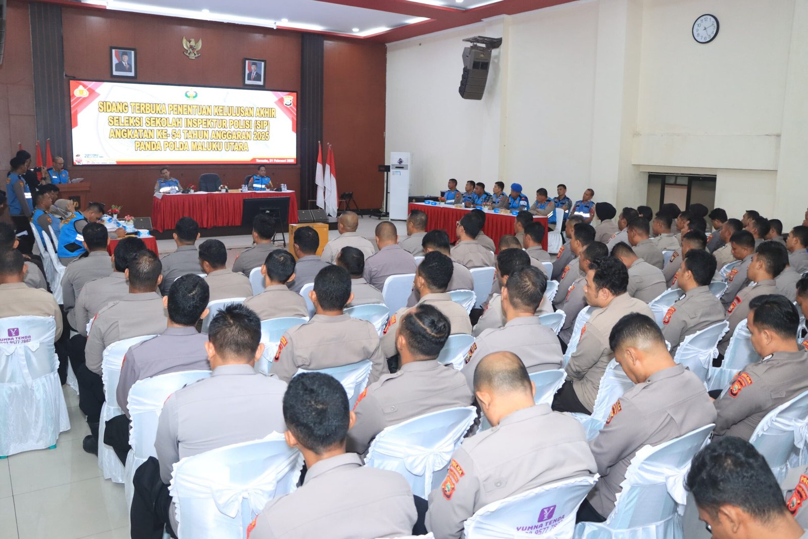 Humas Polda Malut – Biro Sumber Daya Manusia (SDM) Polda Maluku Utara menggelar sidang penentuan kelulusan akhir peserta seleksi Sekolah Inspektur Polisi (SIP) Angkatan 54 Tahun Anggaran 2025.