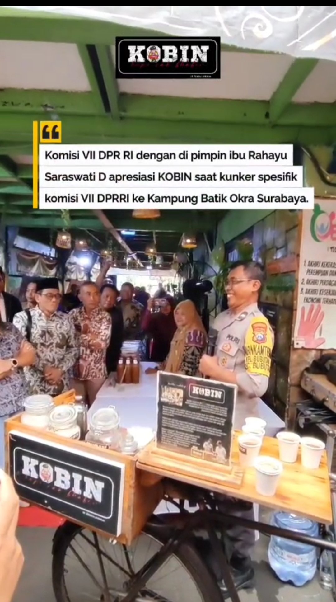 “Kobin adalah salah satu sarana kami kopi cak Bhabin kita berkeliling kampung sebagai tugas khusus ataupun tugas pokok bhabin kamtibmas adalah sambang warga. Maka dari itu saat jita mekakukan sambang ke warga kita dengan datang membawa gerobak Kobin,” kata Sugeng, Selasa (17/2/2026).