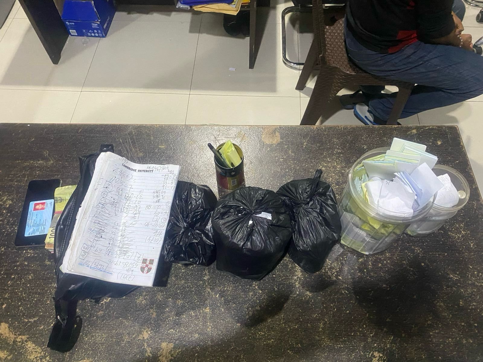 Kelima pelaku yang diamankan berinisial AW (49), AHI (40), MD (50), FU (20), dan MA (59). Mereka beserta barang bukti yang ditemukan telah dibawa ke Polda Maluku Utara untuk proses penyidikan lebih lanjut. Barang bukti yang berhasil diamankan antara lain 3 kantong hitam berisi lembaran kupon, 1 buah Tas hitam, 2 buah Kaleng yang berisi lembaran kupon, 1 Unit Handphone, 1 buah KTP dan uang tunai hasil judi togel sebanyak Rp797.000.
