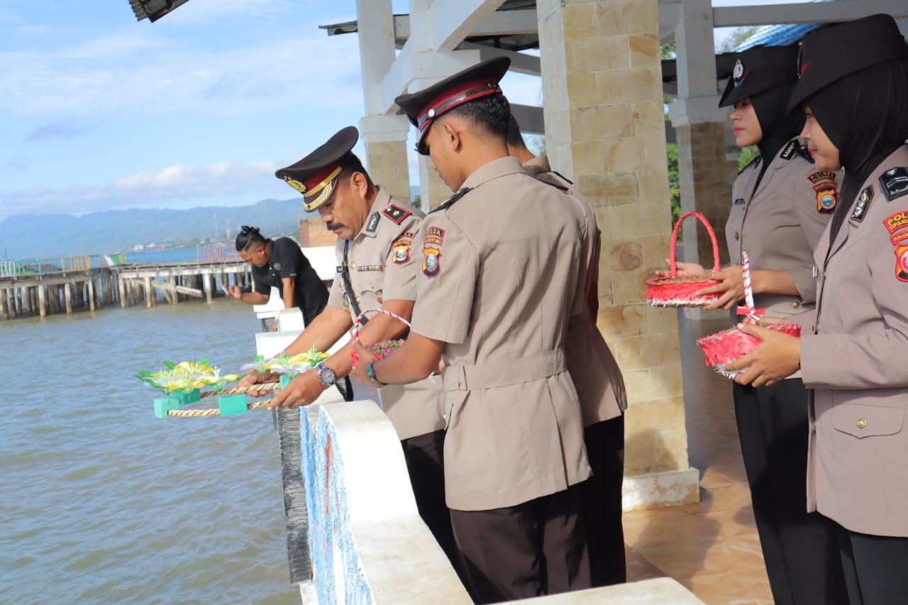 Kegiatan kemudian dilanjutkan dengan tabur bunga di laut oleh Wakapolres, para pejabat utama Polres Sula, serta para tamu undangan.
