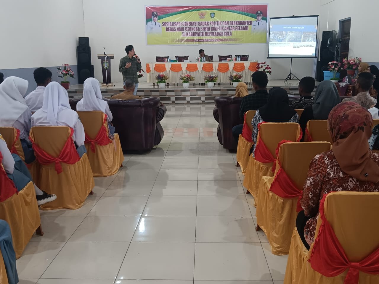 Kegiatan Sosialisasi di laksanakan Di gedung Serba Guna Taufik Center Desa Fatce guna mengantisipasi tawuran dan Konflik. Sanana, Senin(24/06/2024)