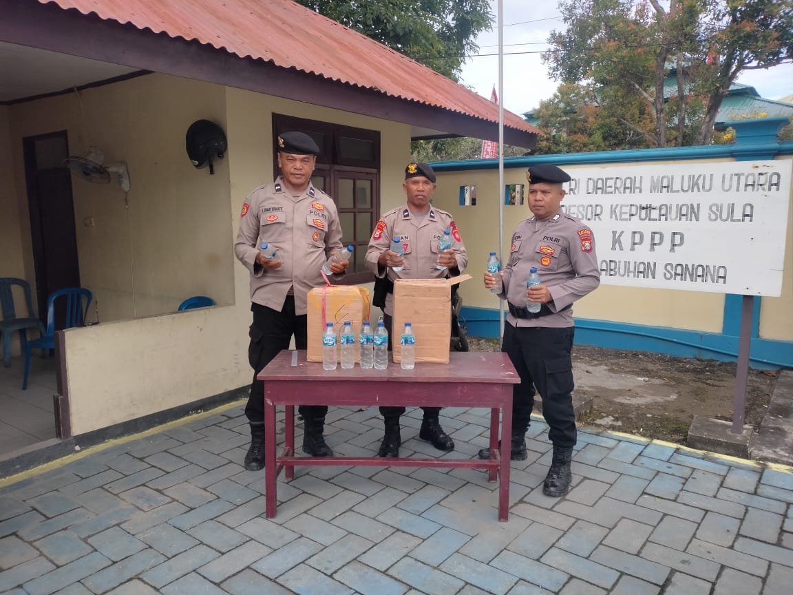 Polres Kepulauan Sula- Kepolisian Resor Sula melalui Personil PAM Obvit Sat Samapta Pelabuhan Sanana berhasil mengamankan minuman keras jenis cap tikus di KM. Permata Obi, Rabu (14/8/24).