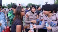 Aksi Humanis, Polwan Bagikan Air Mineral dan Roti untuk Massa Demo di Depan DPR