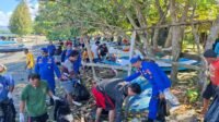 Jaga Kelestarian Laut, Polairud Marnit Morotai Bersama Nelayan Gelar Aksi Bersih Pesisir