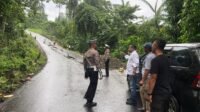 Polres Halmahera Timur Sigap Amankan Jalan Lintas Halmahera yang Longsor Akibat Hujan Deras