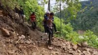 Personel Polres Gayo Lues Evakuasi Warga Sakit dengan Cara Digendong di Desa Tetumpun