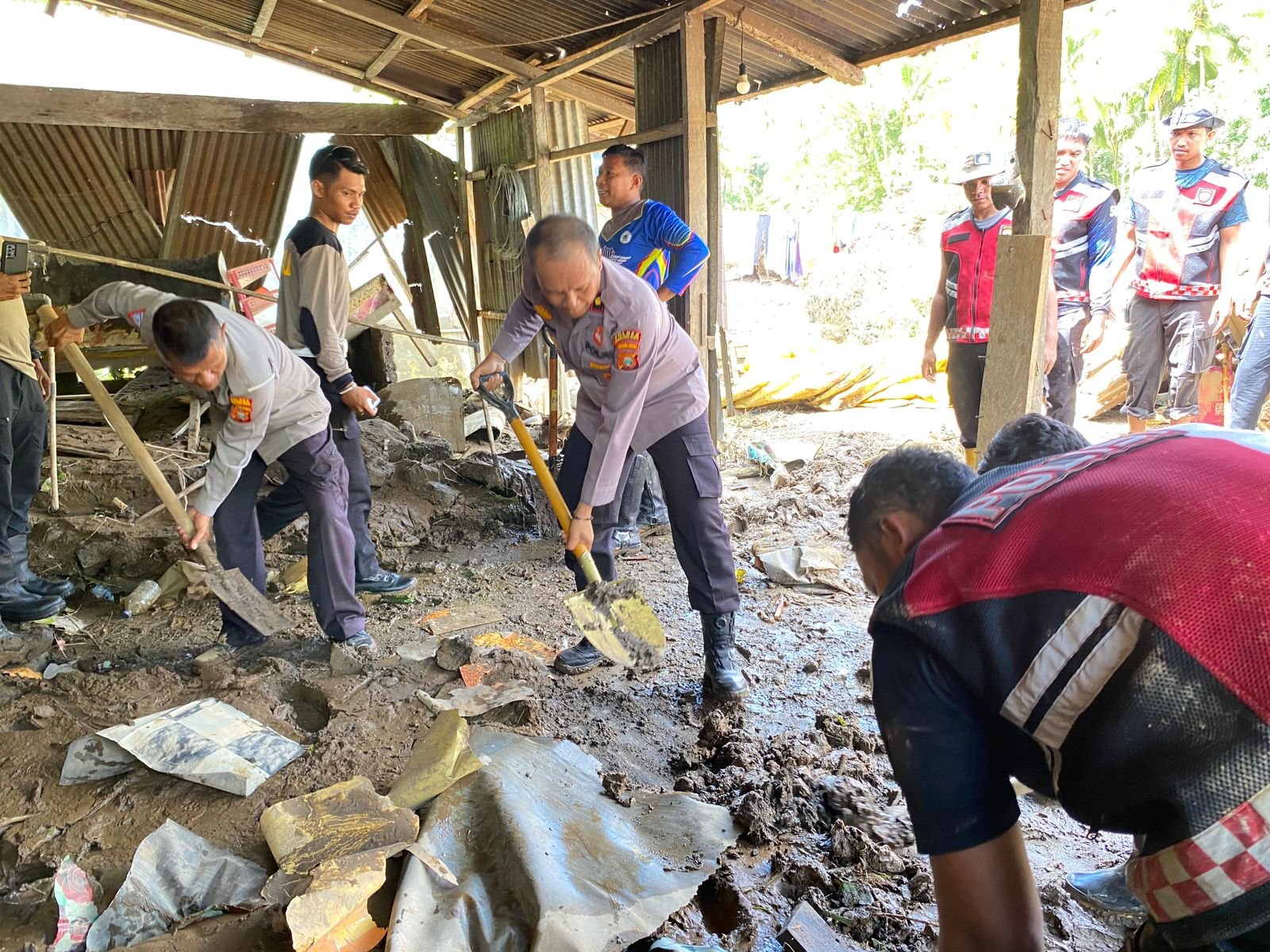 Bakti sosial itu berlangsung pada Sabtu (10/1/2026) di Desa Tongute Ternate Asal, Kecamatan Ibu. Sejumlah personel kepolisian turun langsung ke permukiman warga untuk membantu proses pembersihan sisa-sisa material banjir.