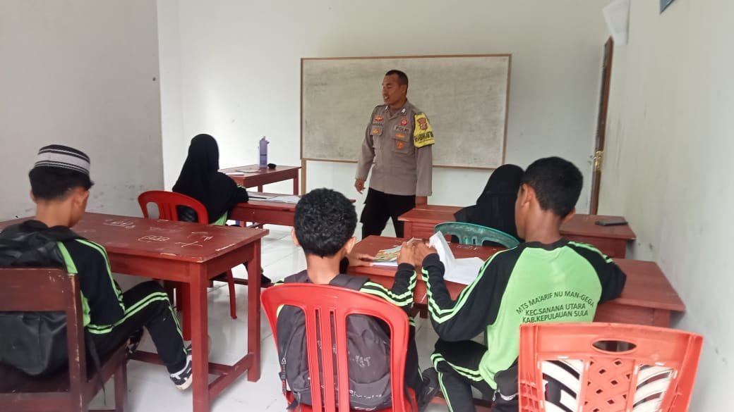 Seperti halnya yang dilakukan oleh Bripka Oman Umanahu, Bhabinkamtibmas Desa Mangega di Kecamatan Sanana Utara, Kabupaten Kepulauan Sula ini. Disela-sela kesibukannya berpatroli keliling desa masih menyempatkan diri mengajar di MTs Ma’arif Al-Fatah Desa Mangega. Pada Jumat (8/11/24).