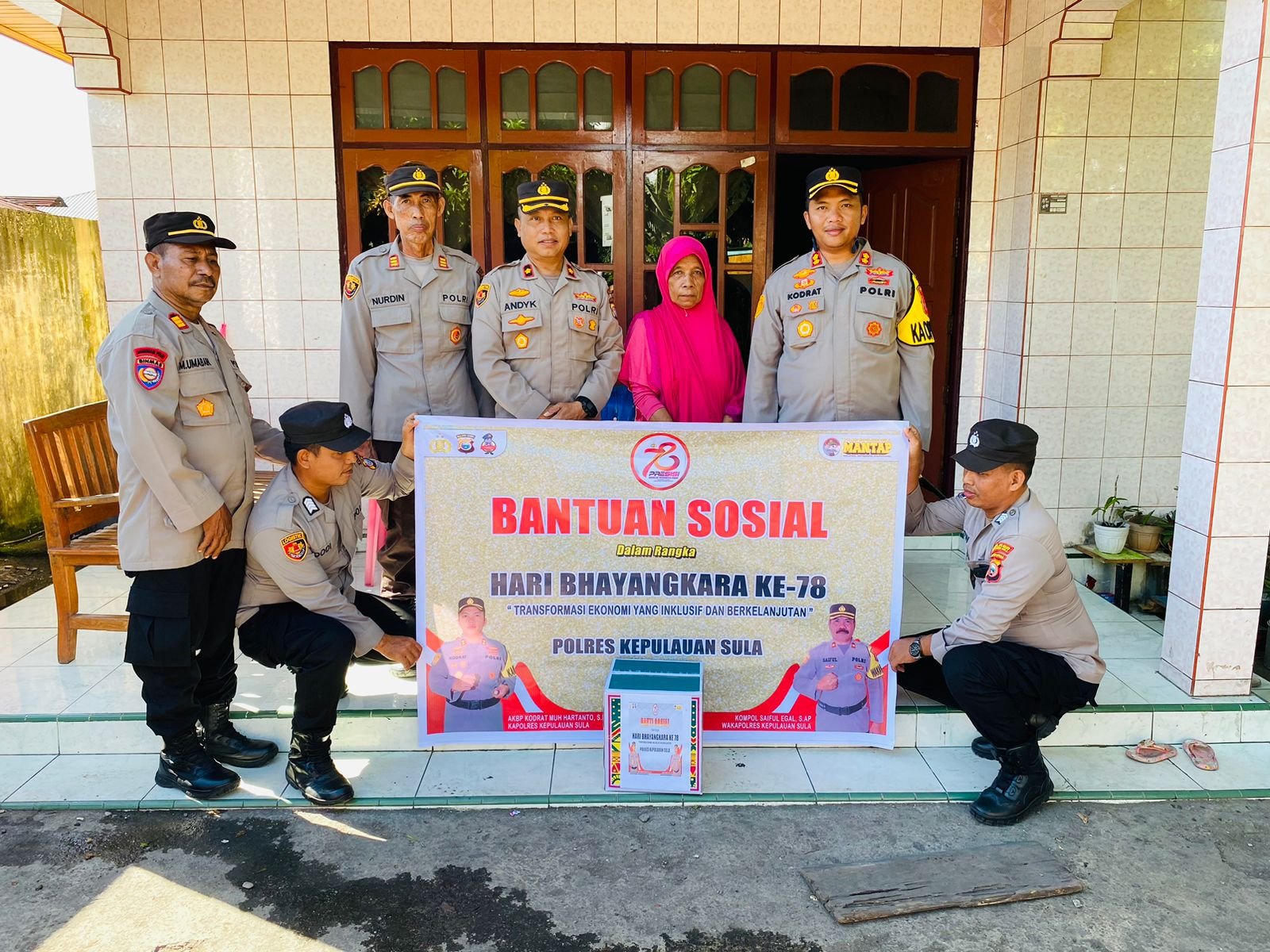 Polres Kepulauan Sula- Dalam rangka memperingati HUT Bhayangkara ke-78, Polres Sula menunjukkan kepeduliannya terhadap purnawirawan polri dengan menyerahkan bansos, pada Kamis (20/6/24).