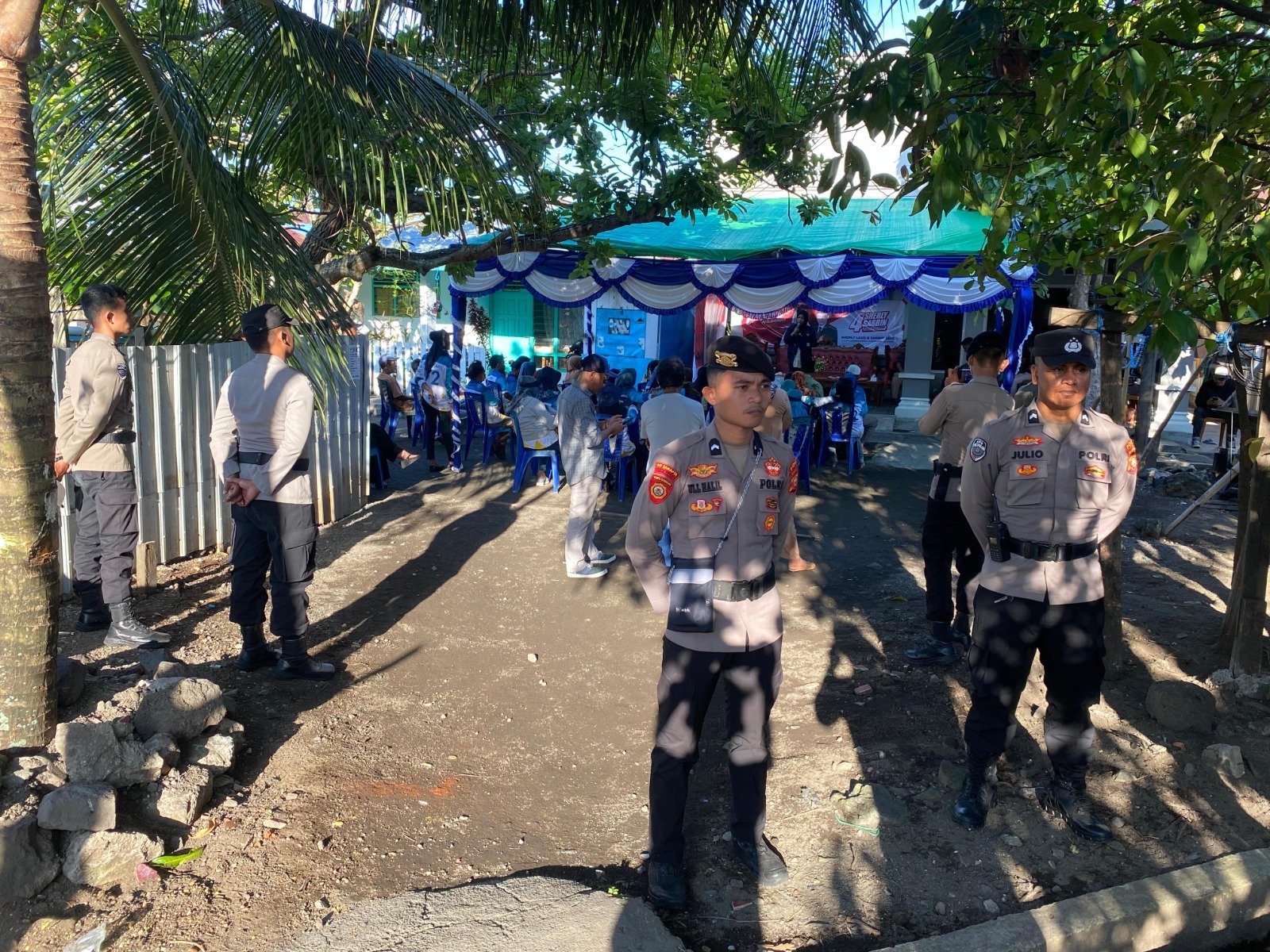 Pada Sabtu, (26/10/2024), personel Operasi Mantap Praja (OMP) Kieraha 2024 melaksanakan pengamanan intensif dalam kegiatan kampanye tatap muka terbatas yang diadakan oleh dua pasangan calon wakil gubernur (Cawagub) Maluku Utara.