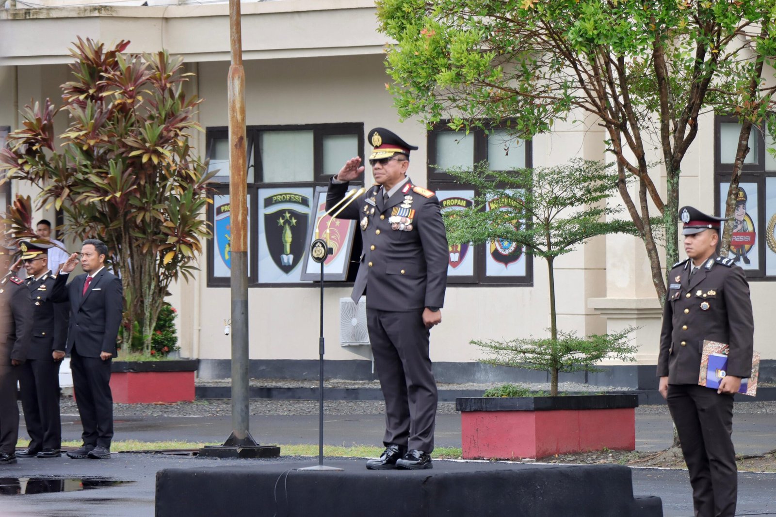 Upacara tersebut dipimpin oleh Wakapolda Maluku Utara, Brigjen Pol Stephen M. Napiun, SIK, SH, M.Hum., dan diikuti pejabat utama Polda serta seluruh peserta upacara dari berbagai satuan kerja.