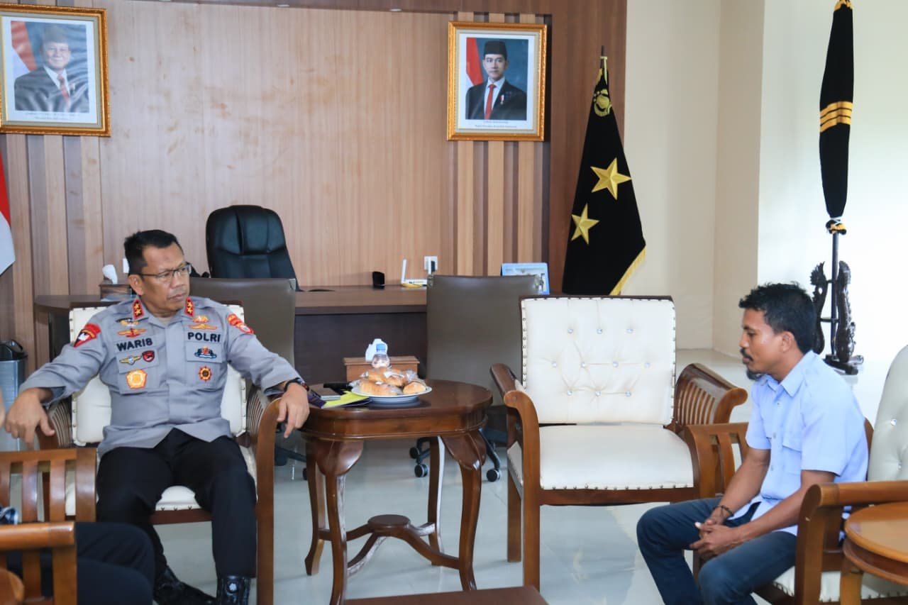 Kapolda Maluku Utara, Irjen Pol. Drs. Waris Agono, M.Si., menerima kunjungan silaturahmi dari perwakilan Majelis Rakyat Kota Sofifi (MARKAS) di ruang kerjanya, Senin (8/9) kemarin. Pertemuan ini membahas sejumlah isu strategis terkait keamanan dan pembangunan di Sofifi.