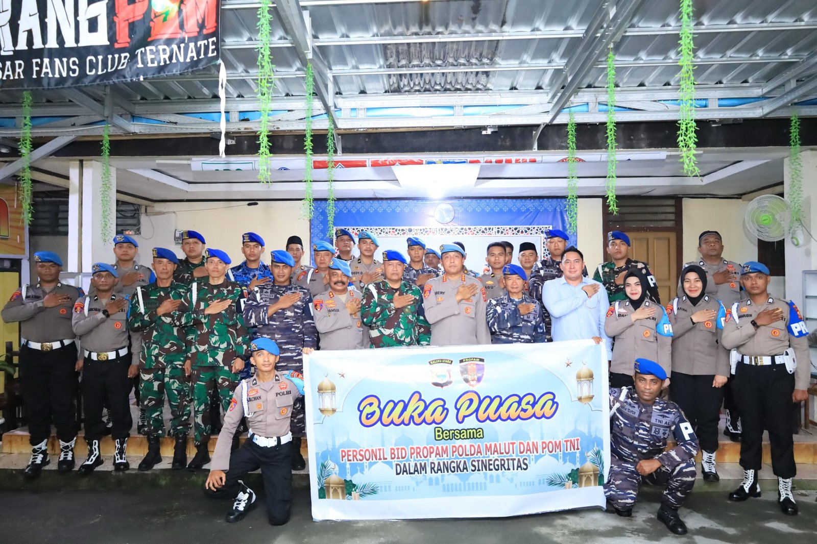 Dalam rangka memperkuat Sinergitas TNI-Polri di Maluku Utara, Bidpropam Polda Maluku Utara menggelar buka puasa bersama dengan POM TNI yang dilaksanakan di kedai Sahla, Kelurahan Kalumpang, Ternate Tengah, Kota Ternate. Selasa (11/3).