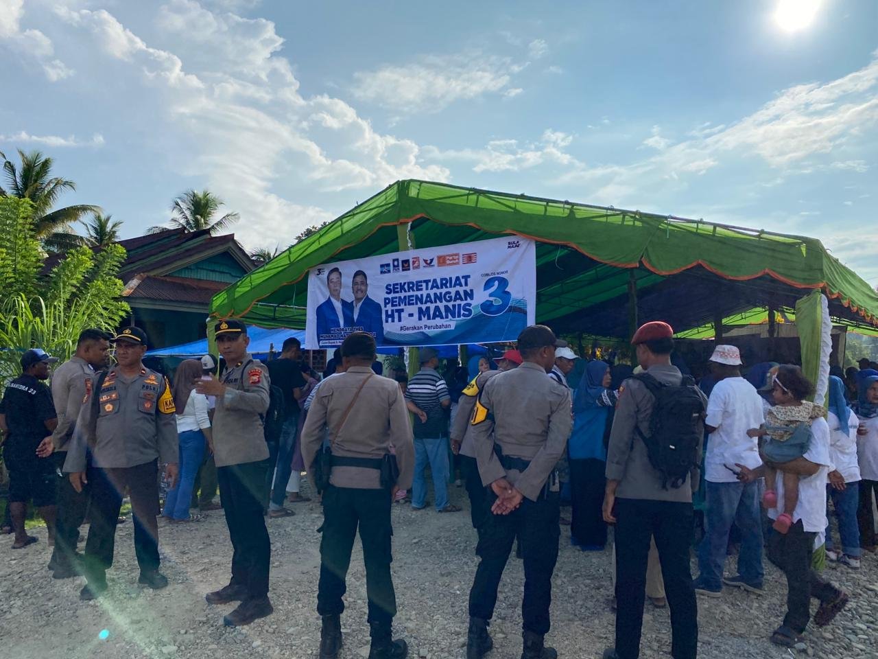 Polres Kepulauan Sula- Personel Operasi Mantap Praja Kieraha 2024 Polres Sula melaksanakan pengamanan kegiatan kampanye oleh Calon Bupati dan Calon Wakil Bupati Kepulauan Sula Nomor Urut 3 HT-Manis.