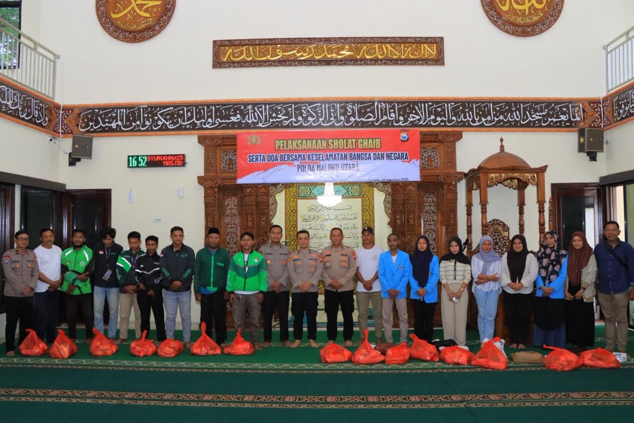 Sebagai bentuk belasungkawa kepada pengemudi ojek online Almarhum Affan Kurniawan, yang meninggal dunia saat terjadinya aksi unjuk rasa di Jakarta, Polda Maluku Utara bersama Komunitas Ojol dan Mahasiswa gelar sholat ghaib hingga doa bersama, Sabtu, (30/8).