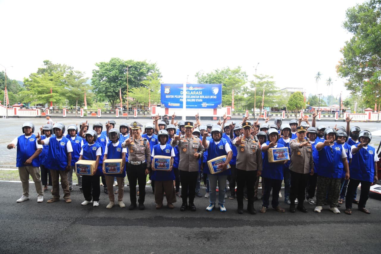 Kepolisian Daerah Maluku Utara menggelar Deklarasi Bentor Pelopor Keselamatan Berlalu Lintas yang berlangsung di Lapangan Apel Mapolda Malut, Sofifi, (19/9) Jumat. Kegiatan ini dipimpin langsung oleh Kapolda Maluku Utara Irjen Pol. Dr. Waris Agono, M.Si.