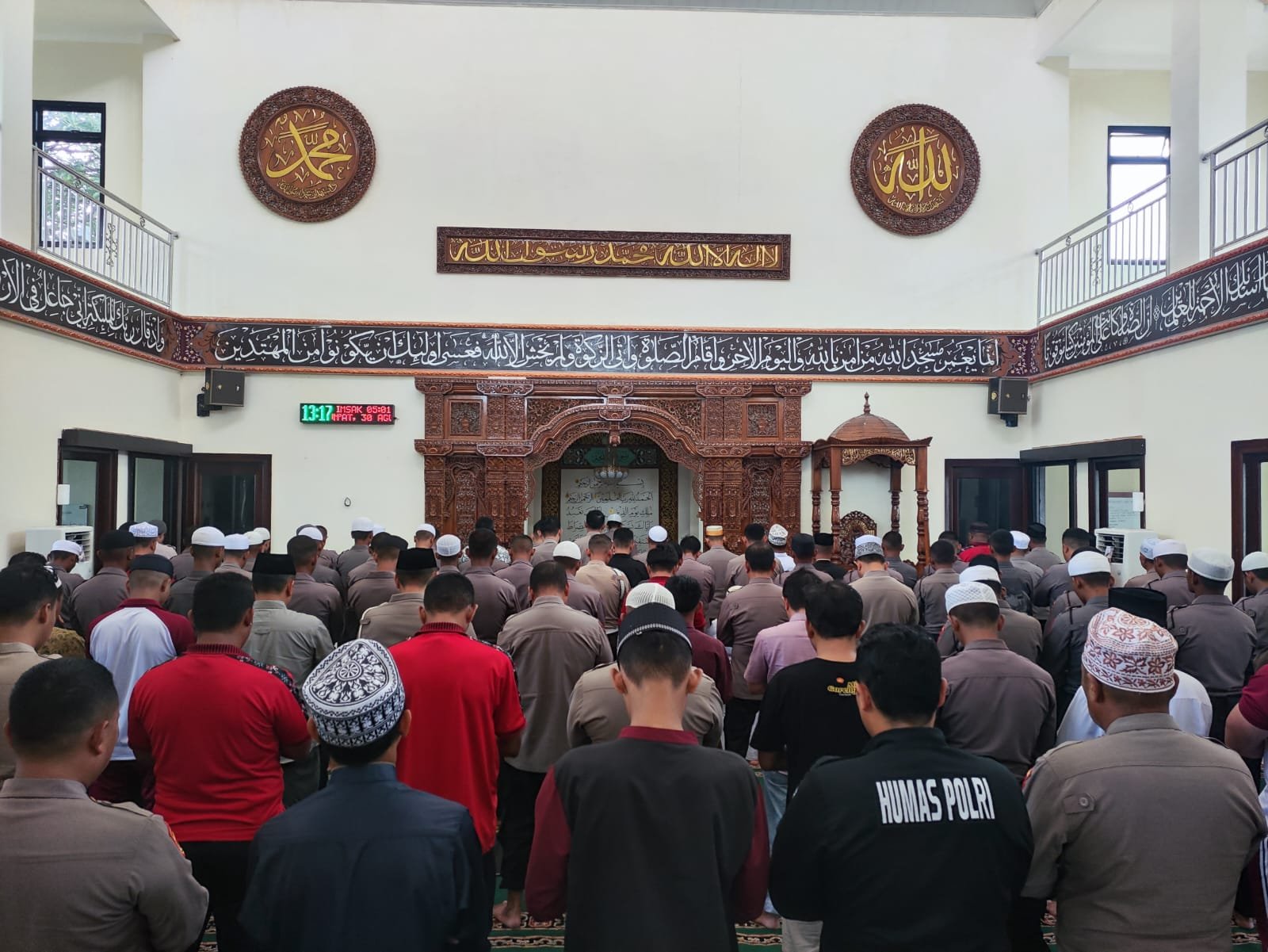 Polda Maluku Utara (Malut) menunjukkan rasa solidaritas dan kepedulian terhadap musibah banjir bandang yang menimpa Kelurahan Rua dengan menggelar Sholat Gaib. Kegiatan ini dilakukan usai Sholat Jumat di Masjid Nurul Huda, Polda Malut, Kota Ternate, pada Jumat (30/08/2024). Acara tersebut dihadiri oleh pejabat utama serta personil Polda Malut, dan diikuti oleh masyarakat sekitar.
