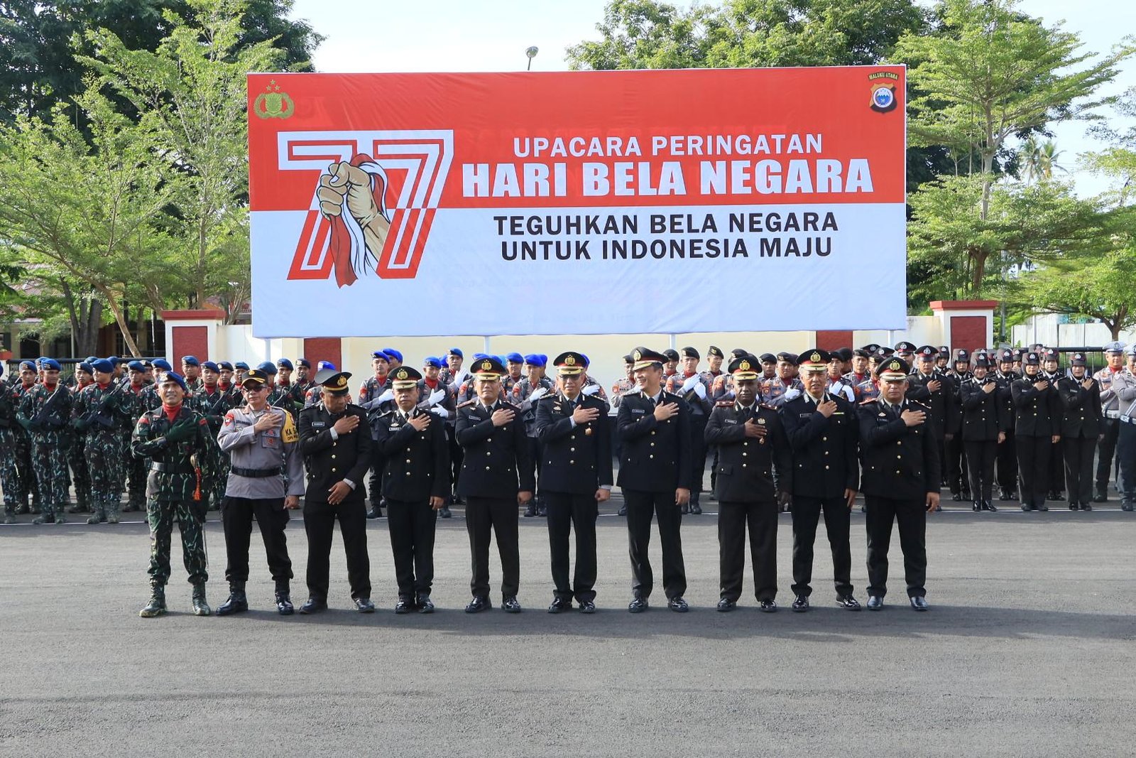 HUMAS POLDA MALUT – Kepala Biro Sumber Daya Manusia (Karo SDM) Polda Malut, Kombes Pol. Ali Wardana, S.H., S.I.K., M.M., mewakili Kapolda Maluku Utara, bertindak sebagai Inspektur Upacara pada Peringatan Hari Bela Negara ke-77. bertempat di Lapangan Apel Mapolda, Jumat (19/12/2025).